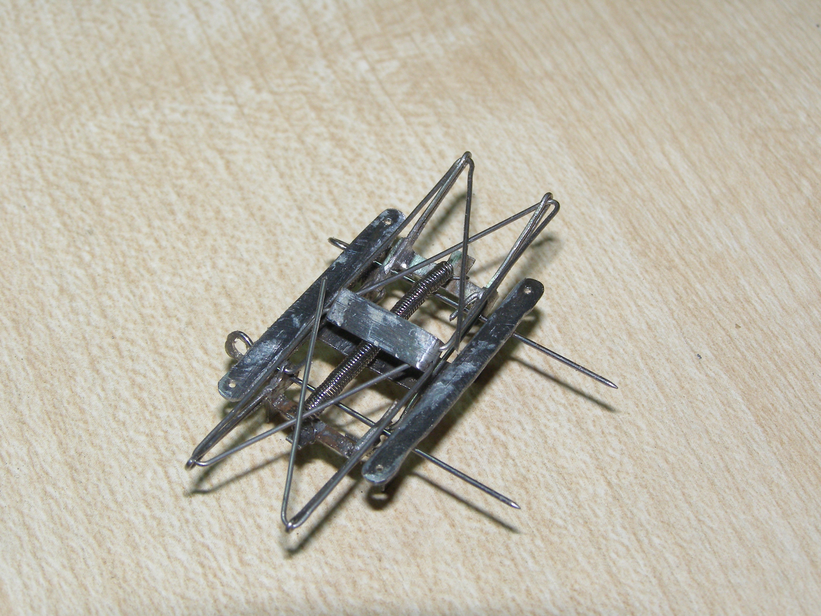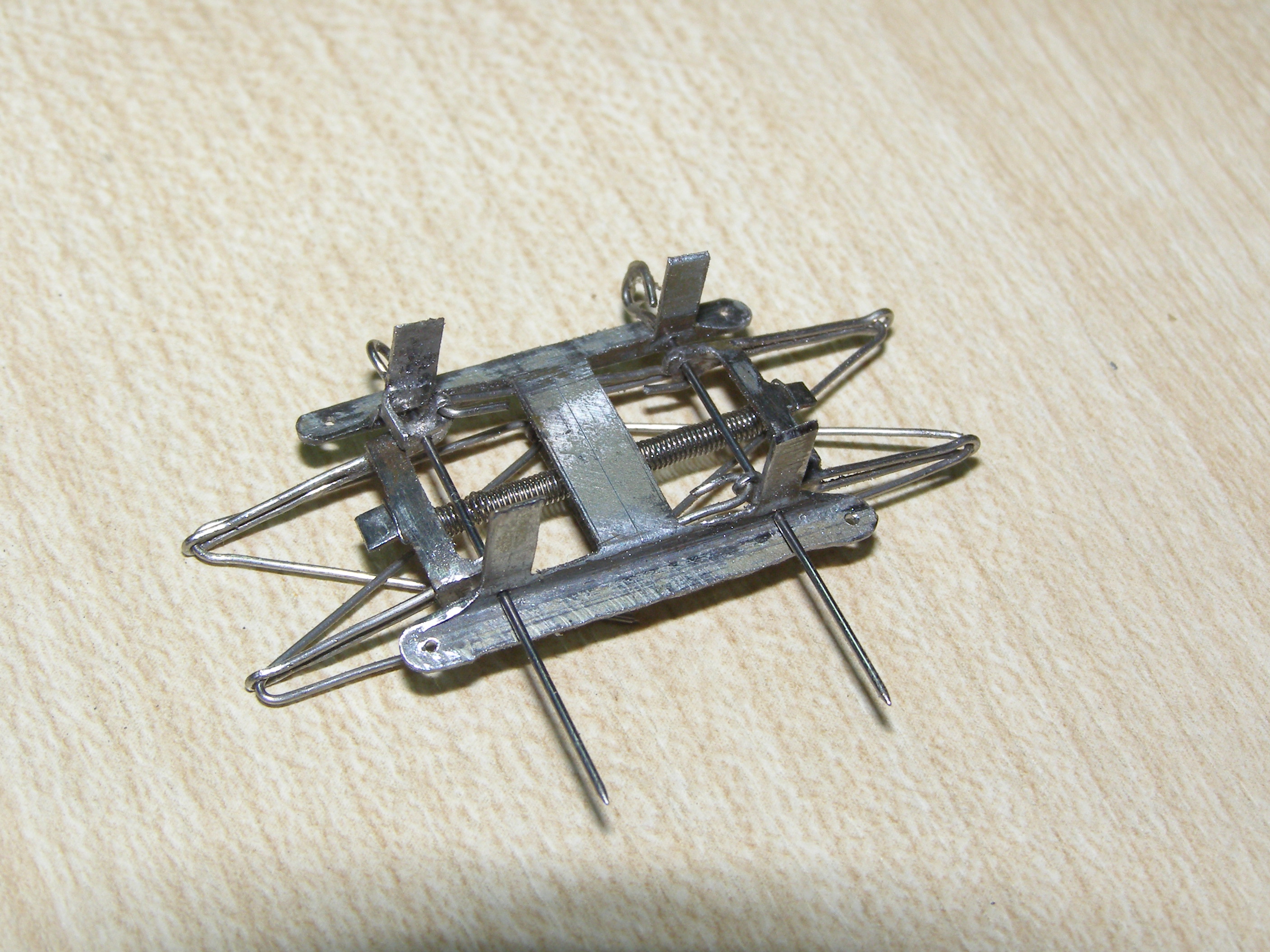 Вся конструкция будет крепиться к корпусу винтом с гайкой. Вот пока и все. Работа движется,хотя и медленно - просто не хватает времени. И очень много его отняло изготовление рам, изоляторов, направляющих на которые они одеваются. Их делал из булавок со шляпками, которые несколько толстоватые, пришлось стачивать их по длине, чтобы они прошли в отверстия в раме и корпусе. С изоляторами тоже пришлось повозиться. Но в результате вроде бы все получилось очень даже ничего, как мне кажется.