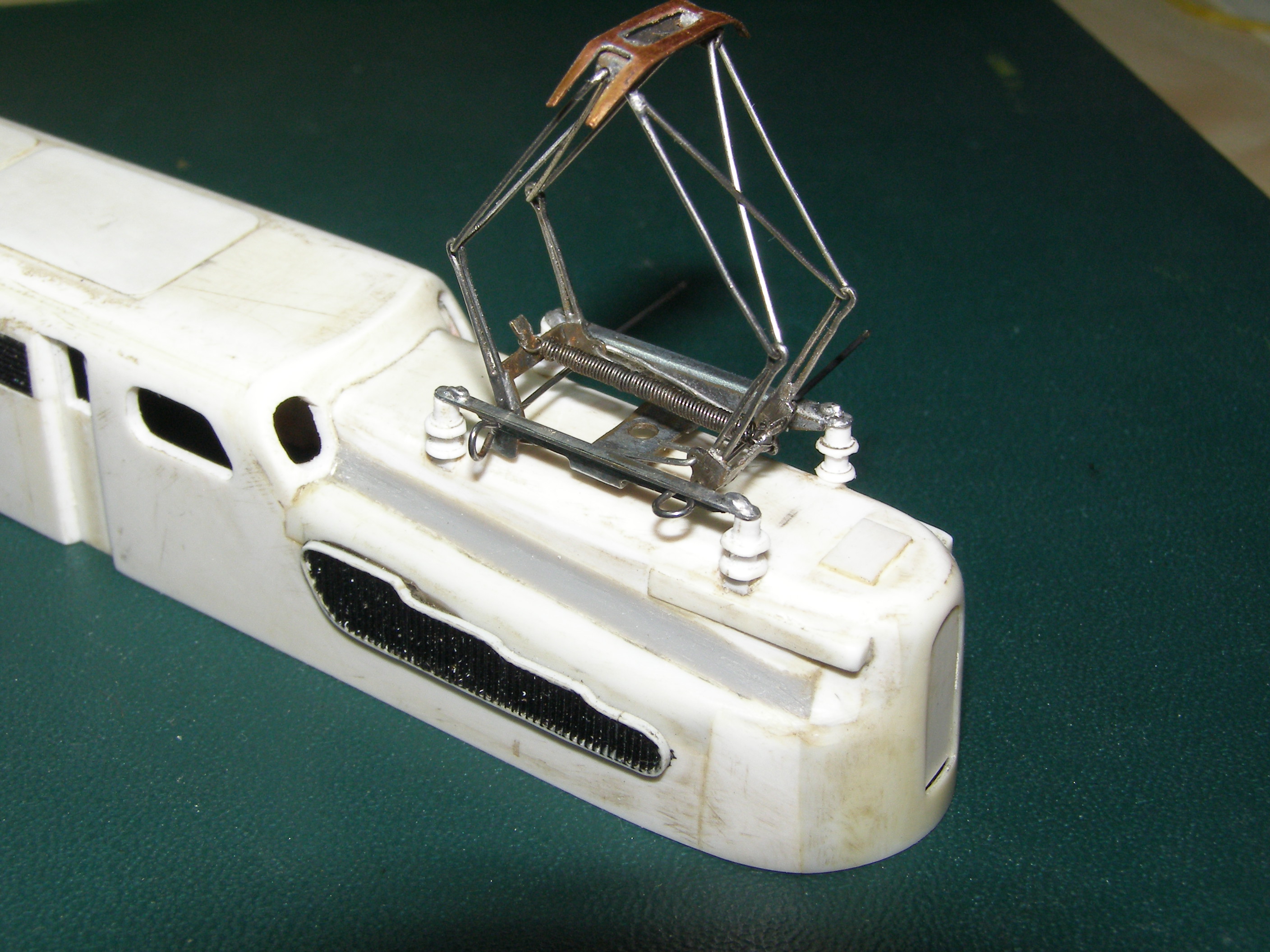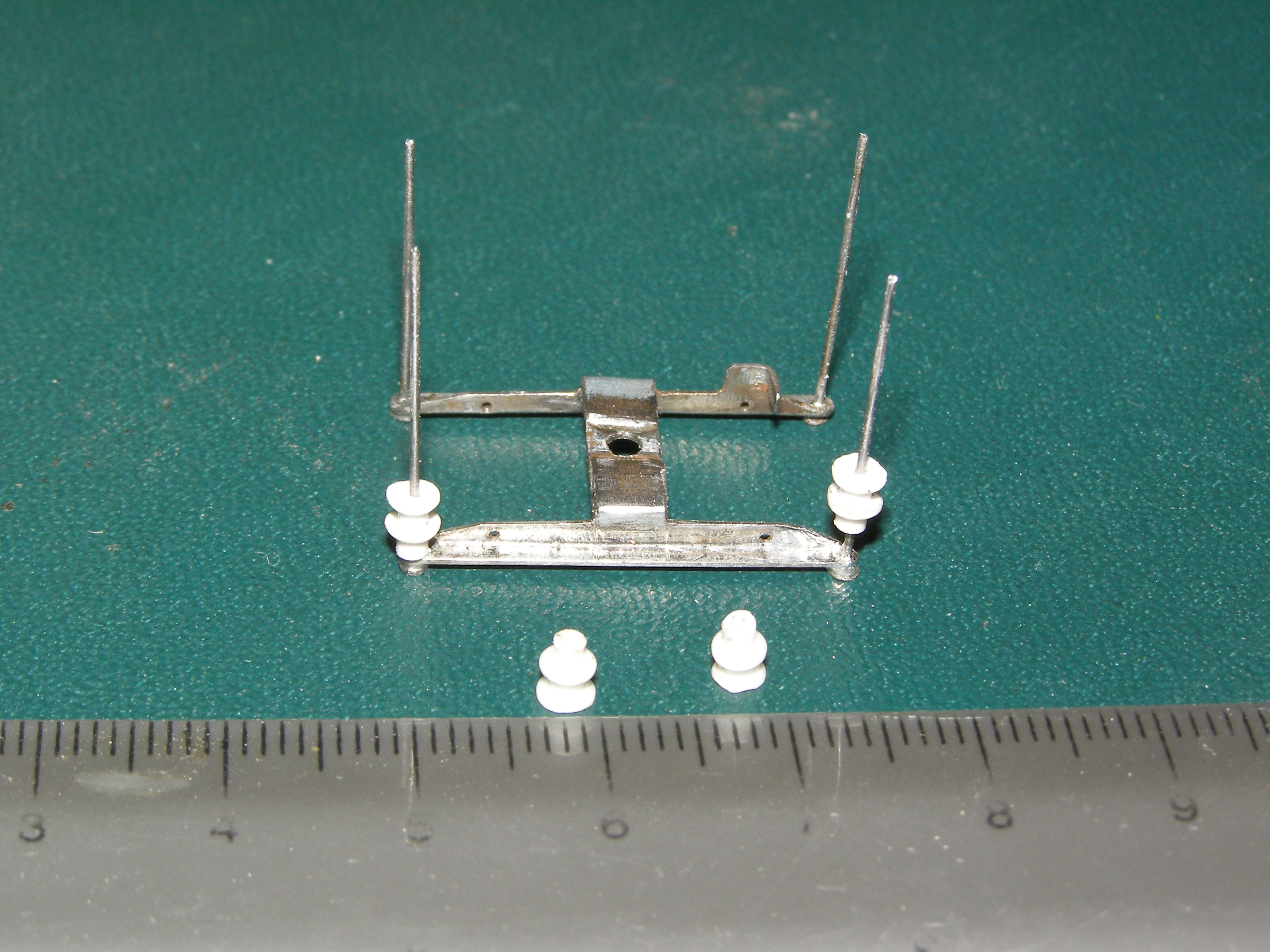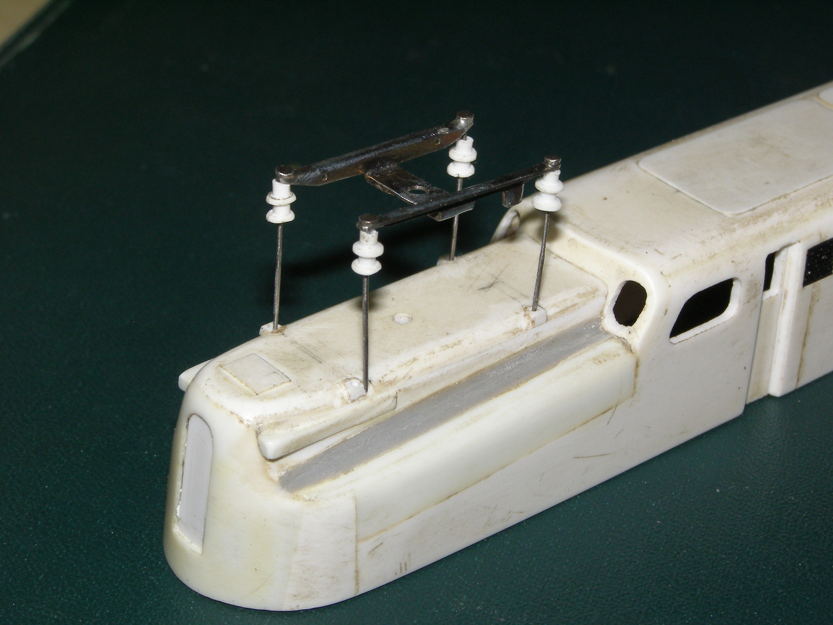 Здравствуйте всем! После небольшого перерыва выкладываю то что наработал. После нескольких проб и ошибок сделал наконец пантографы. Первоначальную раму, куда крепится пантограф забраковал - поучилась немного шире из-за чего ее нельзя было закрепить на корпусе. В результате переделывал ее пару раз. Потом возникла проблема - как и из чего сделать изоляторы. После нескольких попыток просто выточил их на своем станке. Вот что получилось, хочу услышать Ваше мнение.