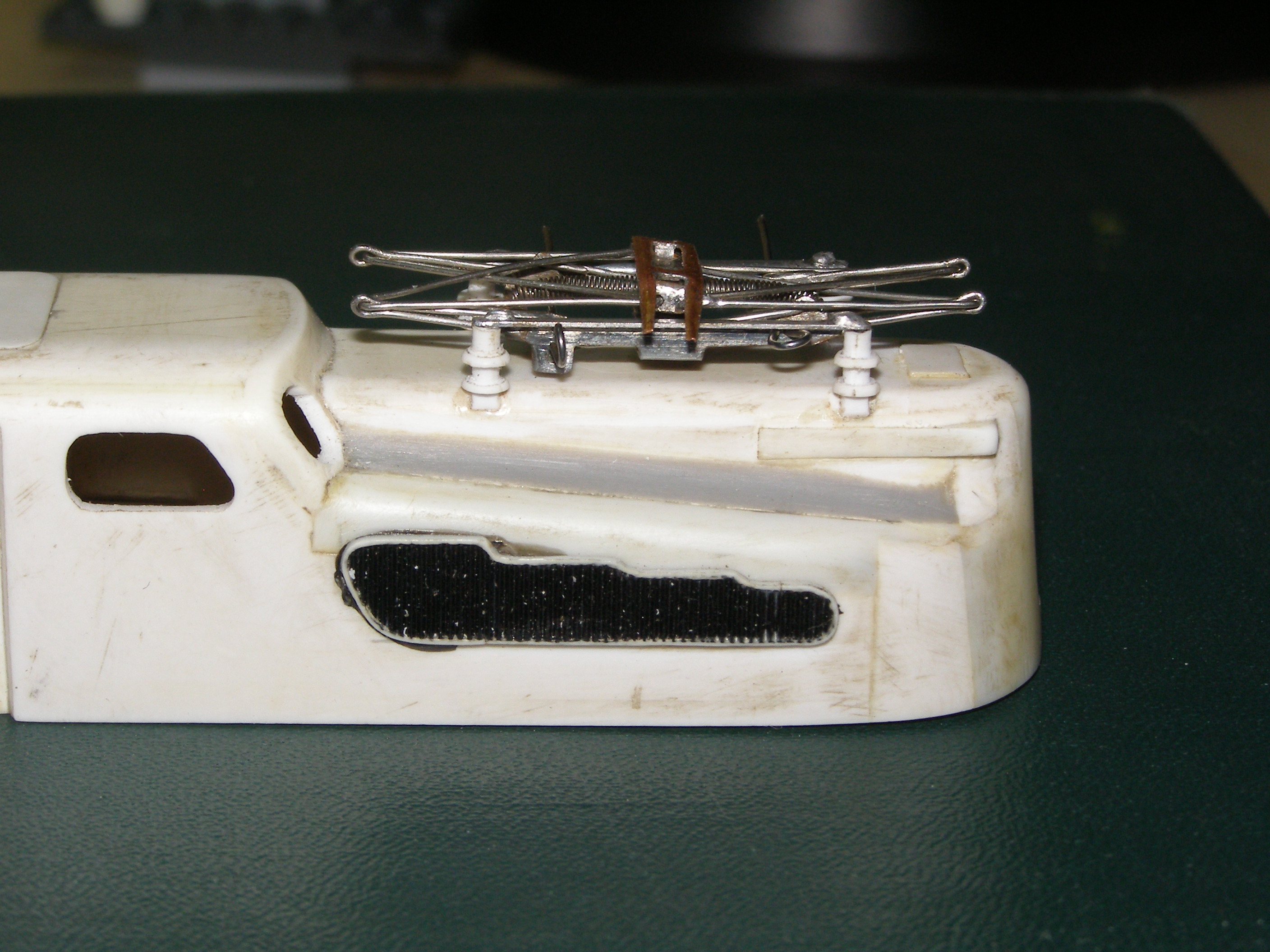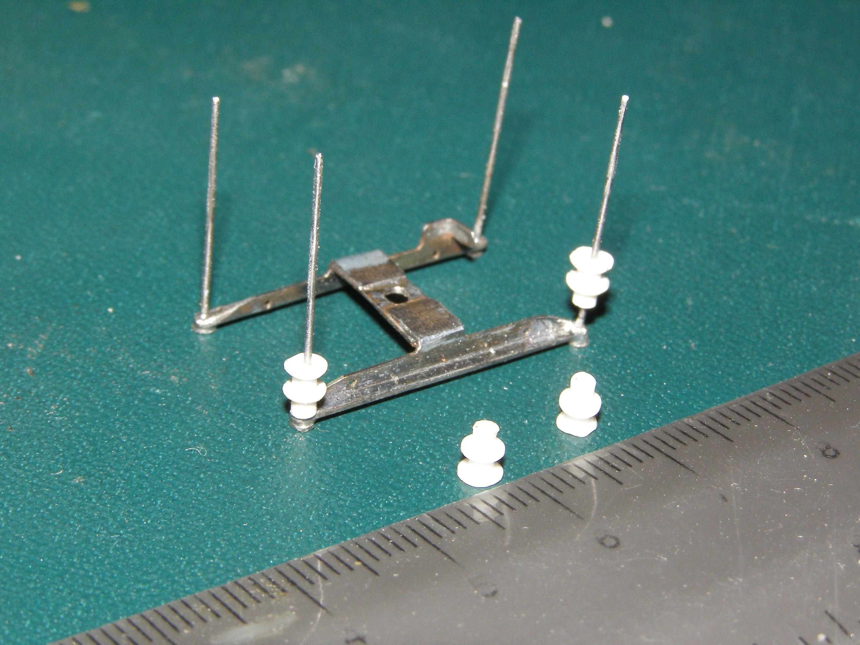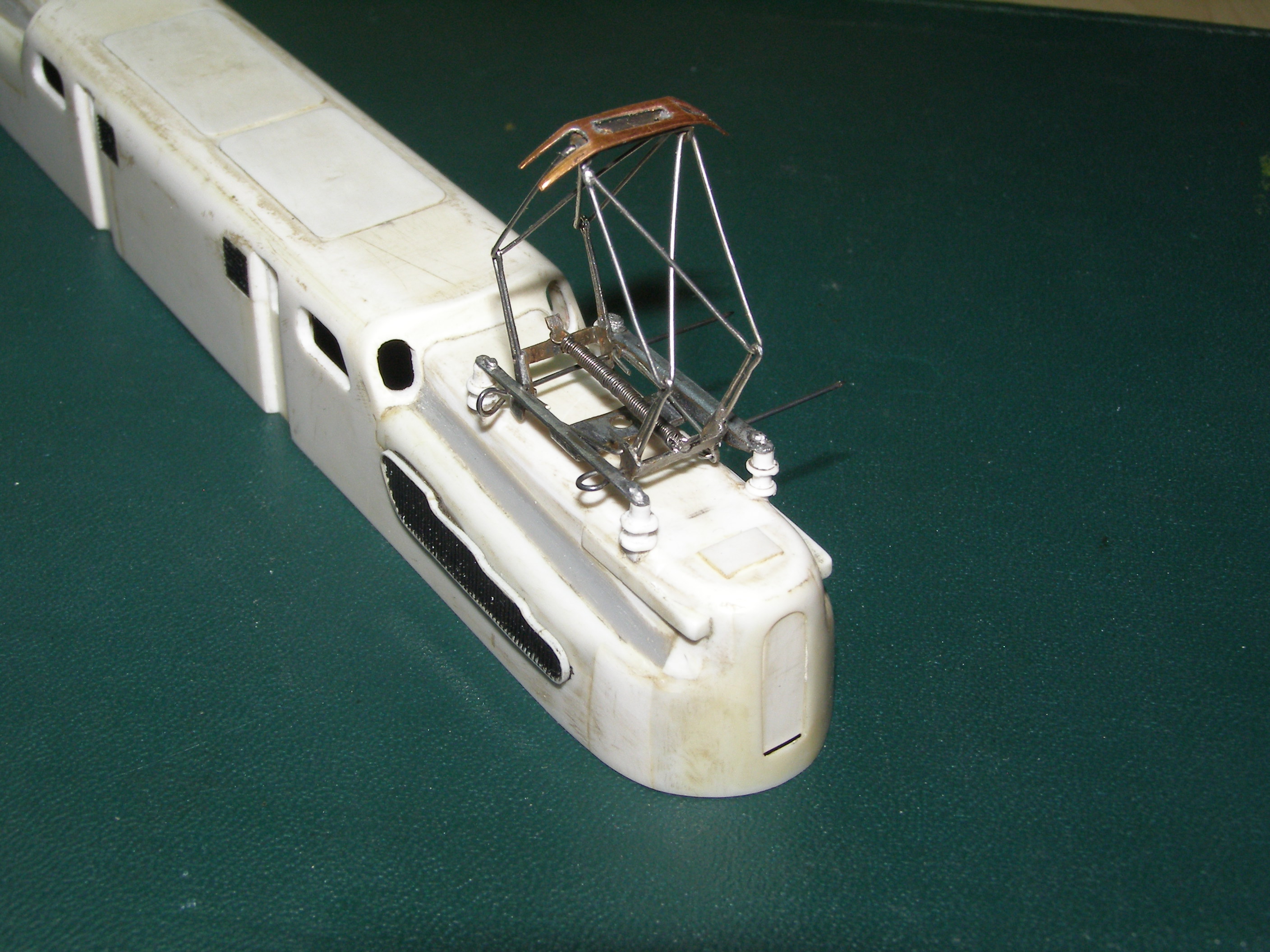 Здравствуйте всем! После небольшого перерыва выкладываю то что наработал. После нескольких проб и ошибок сделал наконец пантографы. Первоначальную раму, куда крепится пантограф забраковал - поучилась немного шире из-за чего ее нельзя было закрепить на корпусе. В результате переделывал ее пару раз. Потом возникла проблема - как и из чего сделать изоляторы. После нескольких попыток просто выточил их на своем станке. Вот что получилось, хочу услышать Ваше мнение.