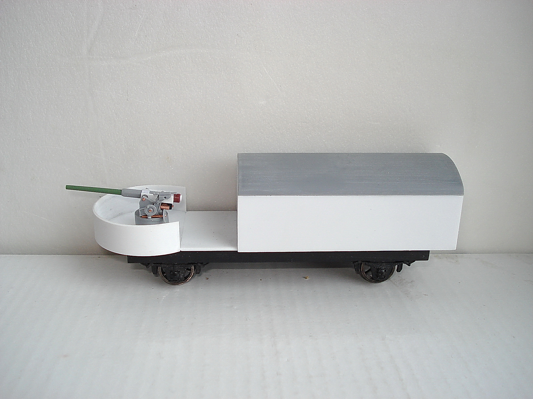 За основу броневагона взят Пиковский семиоконник,с него и крыша и рама,а пушка это в 35 масштабе немецкая противотанковая Pak-37,но от нё мало ,что осталось.Делал 75мм.морскую пушку Канэ.На сколько получилось это уже вопрос.