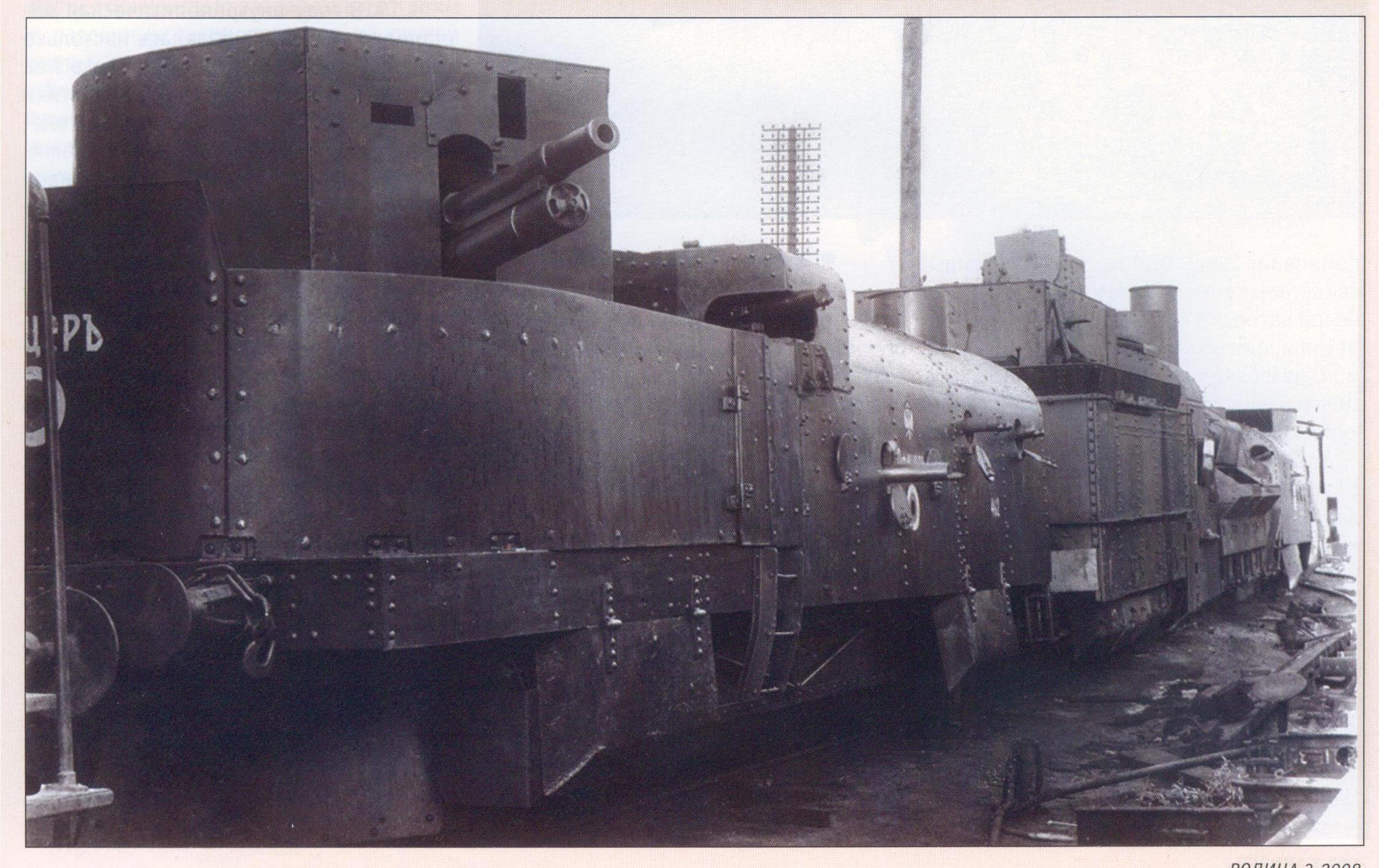 - "был изготовлен в 1932 году в память о каком-то местном революционном бронепоезде и соответственно поставлен как памятник. Во время войны при отступлении его закопали. После освобождения откопали и поставили обратно. В качестве основы для него взята 30-футовая платформа, кстати видны следы снятых шпренгелей. Самое ценное на этом вагоне - буксы."