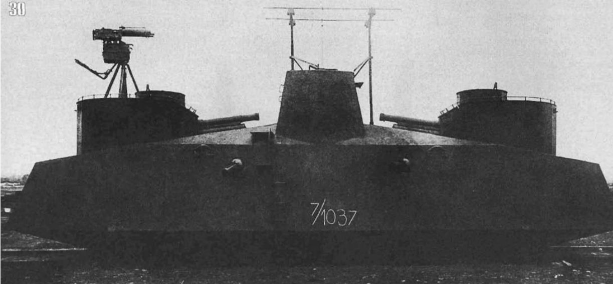 Но нормальных фотографий в общем-то и нет. Их вообще очень мало и общую картину можно восстановить по фрагментам. И есть вот такой чертёжик. Посередине на командирской башне установлена антенна, на артиллерийской - кронштейн для зенитного пулемёта.
