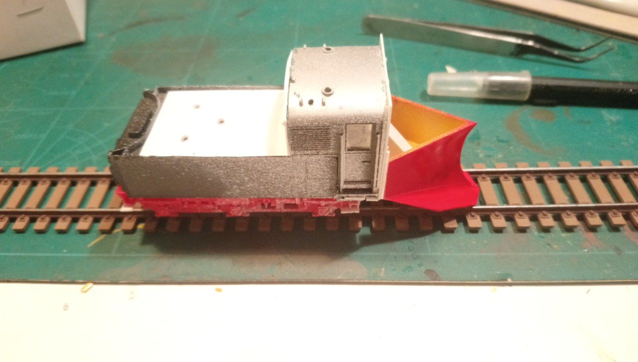 Но, ИМХО, - слегка поспешил с покраской. Стоило загладить и зашлифовать вставки на будке машиниста - уж очень видно стыки