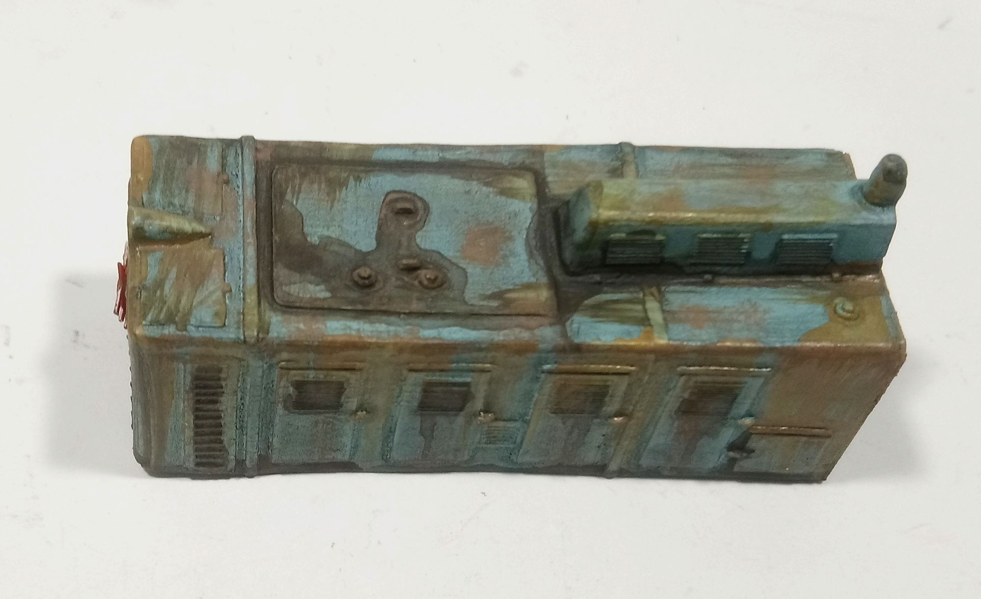 Неожиданно обнаружил в складах капот тепловоза СЖД.Решил заржавить для имитации