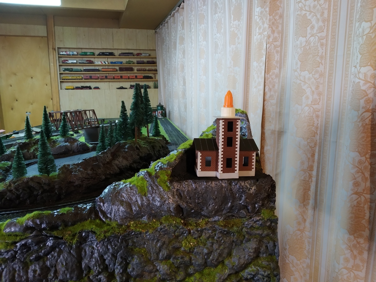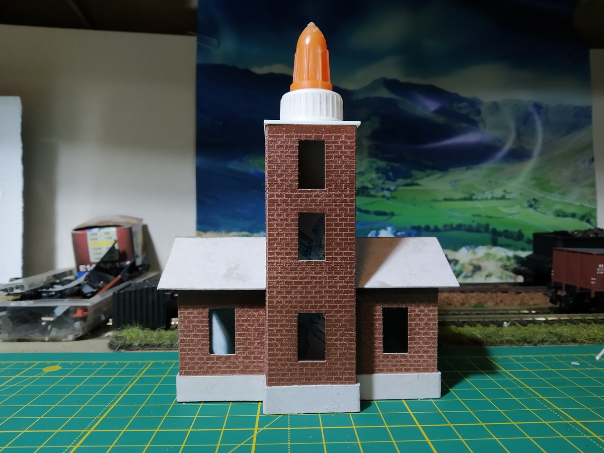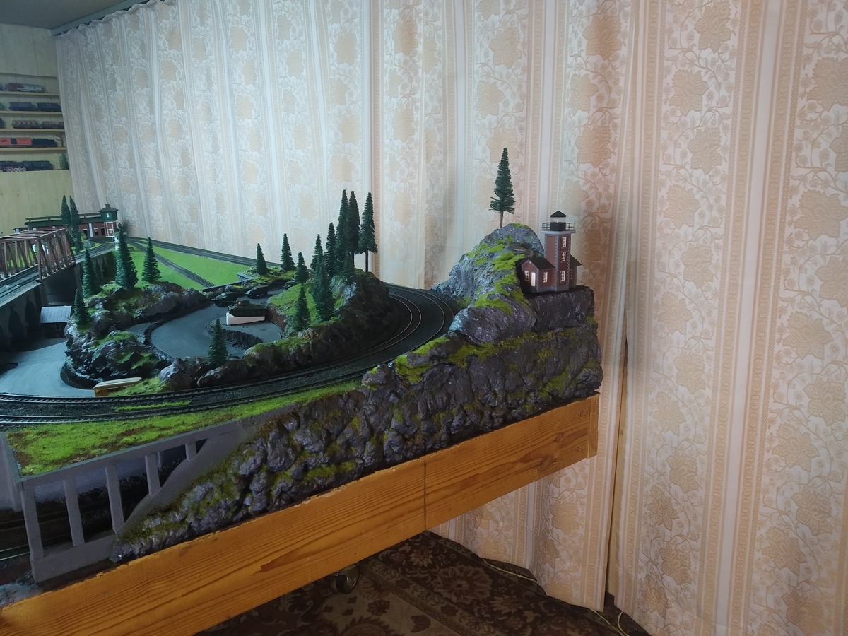 Работа с горой на макете подразумевает наличие маяка. Напомню, что с правого борта намечается модуль с паромной переправой.