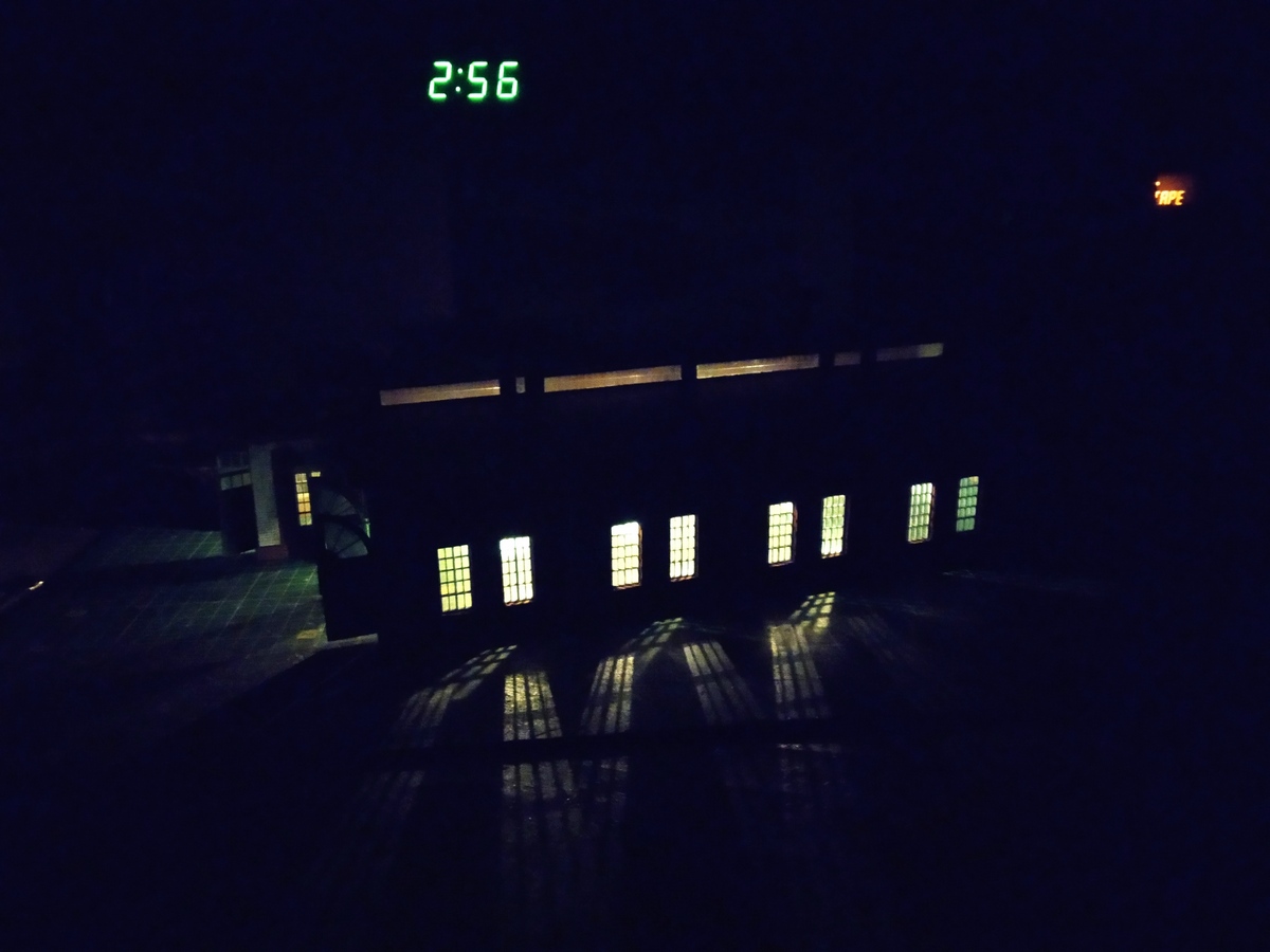Было подключено освещение смотровых ям. Наверное, напрасно потому, что на фотографиях получается сильная засветка. Ассортимент станков весьма скуден, но если делать серьёзный интерьер, то одни лишь станки вопрос не решают. Надо делать всё.