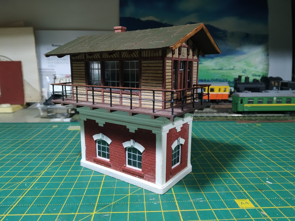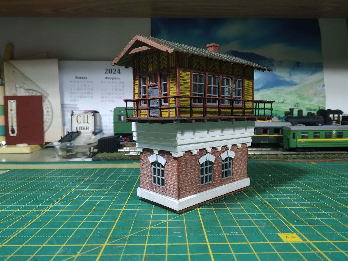 Пошуком інформації сильно не переймався - мотиви взяті з розробки Іржи Індри. ТЗ мені ніхто не ставив. Единою умовою було, що в модулі є заглиблення під фундамент 80х40 мм. В грудні 2010 мені доводилось працювати саме з цією моделлю + власні доповнення. Вона і досі зберігається и до останнього часу перебувала на макеті. Була родрукована на струменевому принтері, фарба з часом вицвіла і взагалі модель вибивається из стилю моєї архитектура, виконаної під фарбування. Робота з постом для модуля хлопців підказала, що треба і свій трохи підтягнути. А краще, зробити інший з нуля.