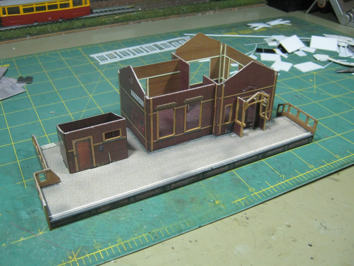 И я, кстати, эксперимента ради попробовал УмБум, а именно станцию Можайскую. Сборку стен начинал тоже на шипах, на крышах всё-таки их срезал, крыши сделал съёмными – думаю об интерьере и иллюминации. Окончательно доводить станцию до ума буду на диораме.
