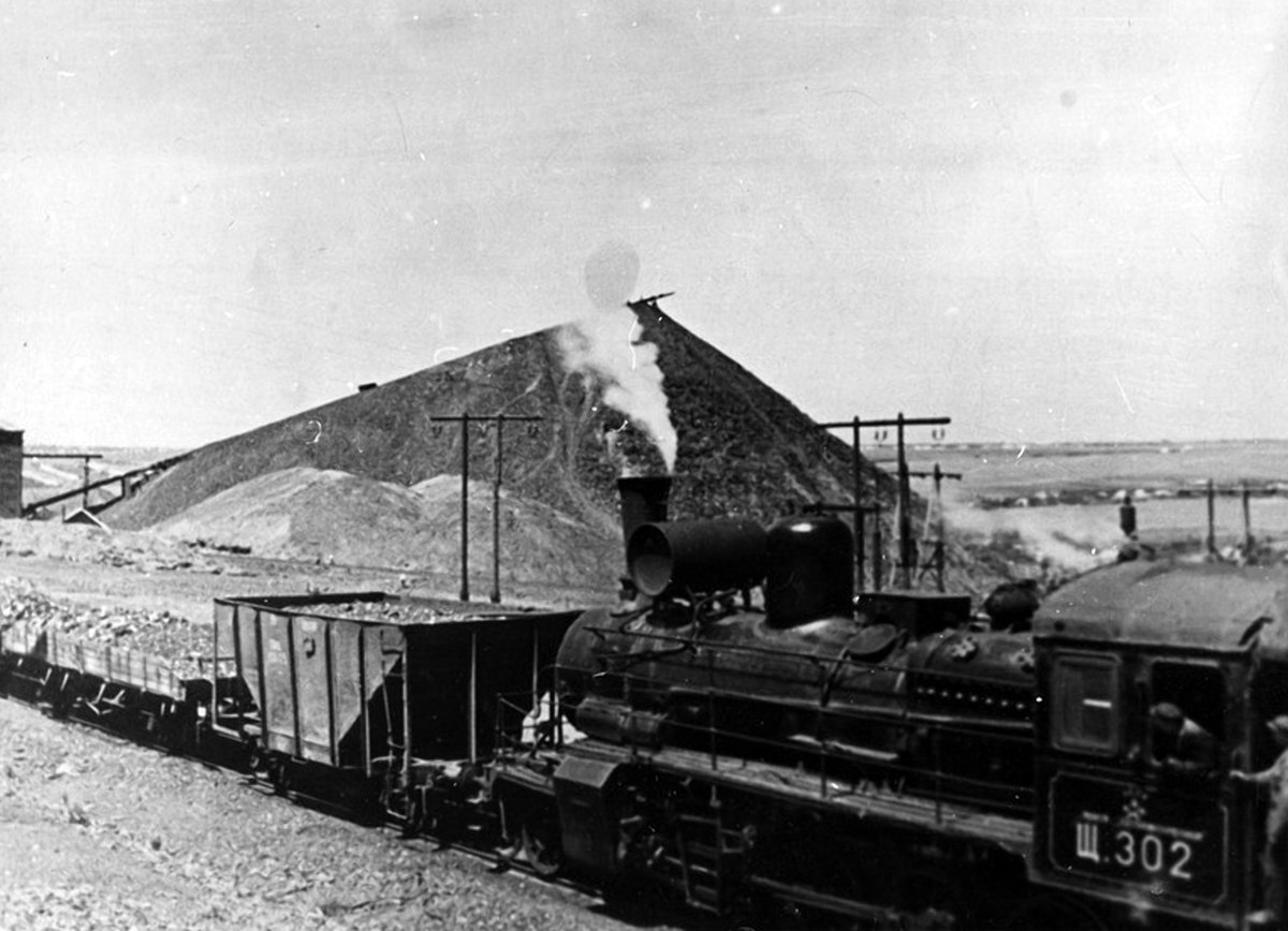 Паровоз 1-4-0 серии Щ.302, СССР, Донбасс, восстановление шахты Кочегарка, 1946 г.