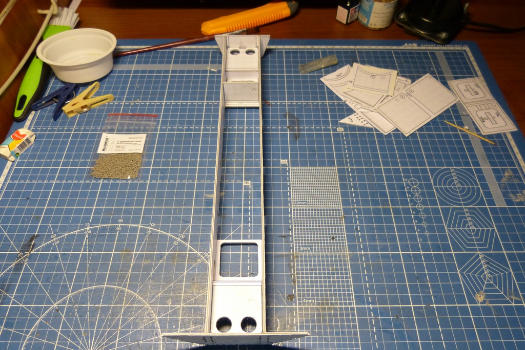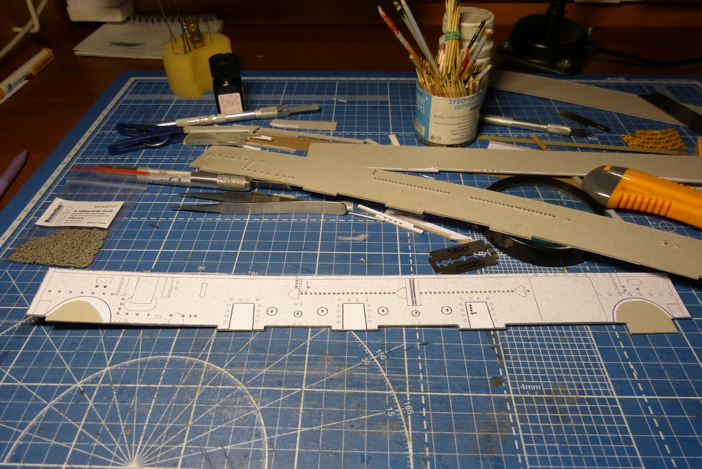 Начал раму экипажную часть,клепка,заклепки от мастер-клуб сферические 1.6мм установочное отверстие 1мм.