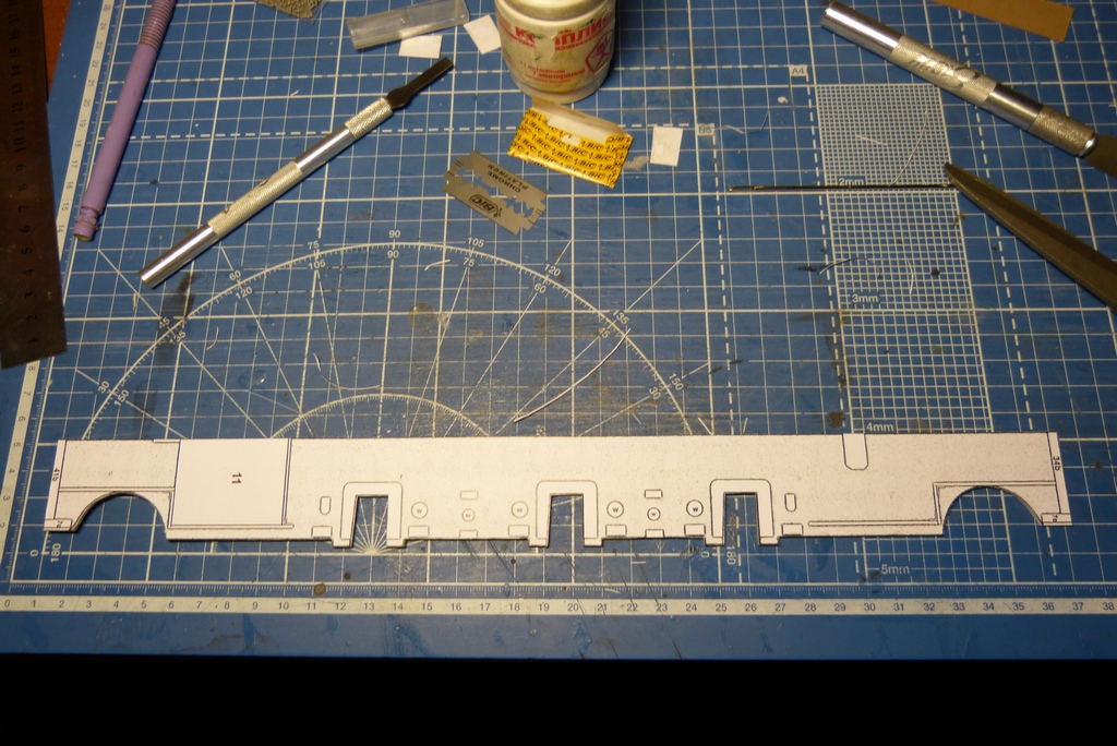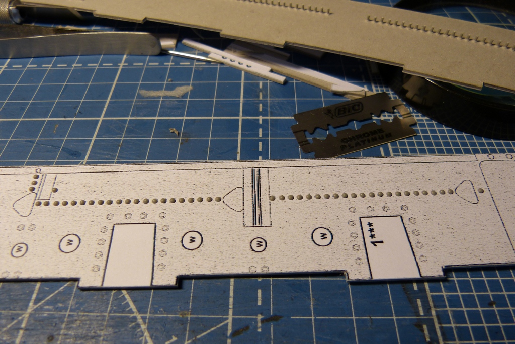 У Петра Гудзя издательство "Бумажная планета" заказал лист гравировки для настилов,ну и начал с платформы.Вычертил и подогнал рифленку,канты установил