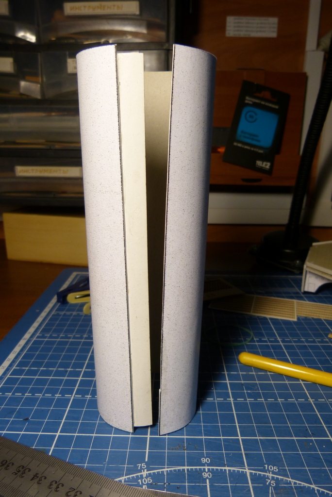 наклеена на картон 0.5мм и прокатывалась на обрезке пластиковой тубы чтобы при высыхании придать нужную форму и потом с помощью лепестка просто соединить.