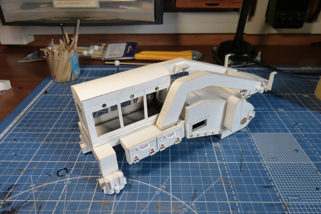Начну сразу про модель.Дело обстоит таким образом.В сети скачал разработку Wan Rayen Models этого агрегата,показалось интересным по форме конструкции,ну и решил построить данную модель.То ли принтер у меня косячил то ли в разработке чего не знаю,но пришлось все перечерчивать и подгонять по месту.Нашел несколько фото оригинала и выяснилось что название PBR-400R как указал разработчик ВООБЩЕ не соответствует прототипу (чем он руководствовался я не знаю) в общем это оказалось ближе к PBR-400 НО !!! и это но меня очень смутило,многое в модели надо полностью переделывать,а так как информации практически нет только несколько фоток,то координальных переделок не получится.Поэтому модель была заброшена,начал я ее в декабре 2017 года.Два месяца назад наводя порядок в подвале наткнулся на коробку в которой обнаружил начатую модель,ОЧЕНЬ я долго думал,что с ней делать,принес домой счистил пыль и начал шевелить мозгами,короче как на ромашке гадал делать или не делать,взвесил все за и против и решил доделать наверно в большей степени сыграло то,что просто жалко было выкинуть.Некоторые конструктивные изминения все же решил сделать.