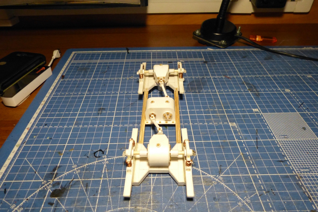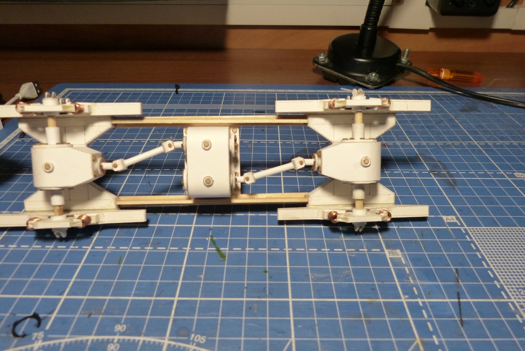 Дело обстоит так,разработчик ВООБЩЕ !!! не дал ходовую,только тележки которые на половину переделаны,долго я думал как поступить и плюнул на все и придумал ходовую сам,что получилось это вам судить,но что смог то сделал.