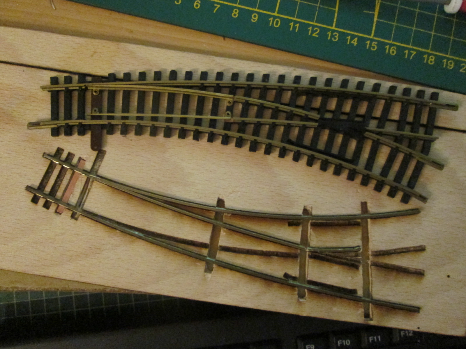 потом да попробовал загнуть усы в контр рельсы за цело, формируя крестовину всю из металла, чуть хлопотнее в выставлении на ш.р., но посильно.