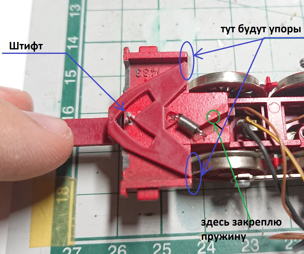 Занялся установкой сцепного коромысла паровоз-тендер. Тут предстоит немного попилить, чтобы сделать его рабочим