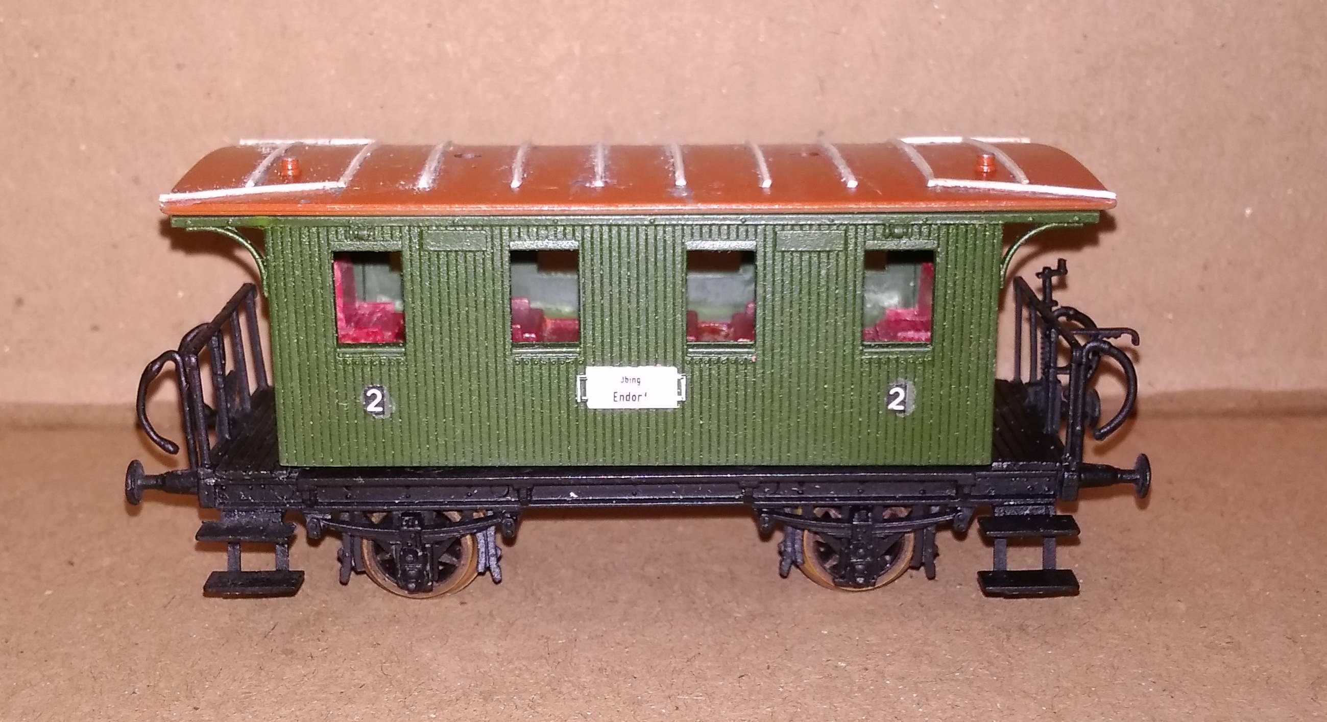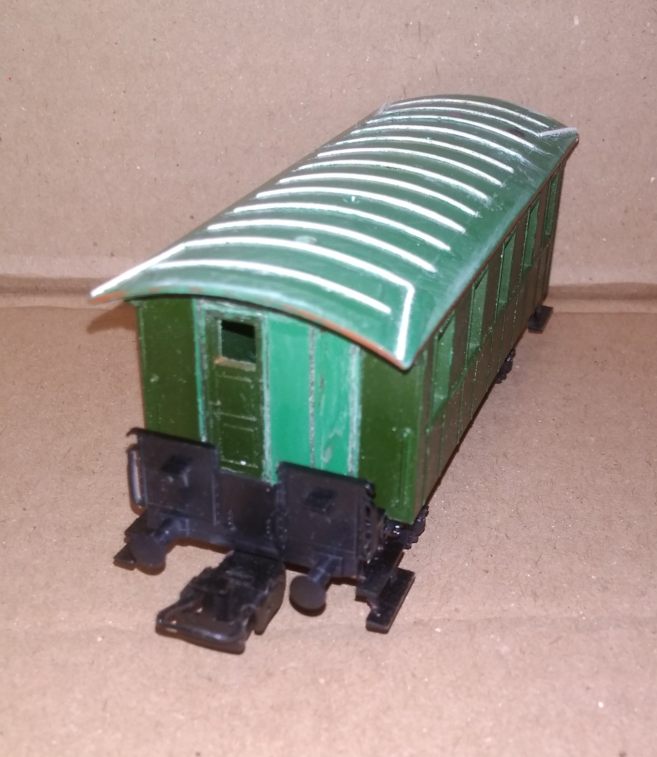 Начинал я переделывать двухосный Марклиновский вагон под пассажирский вагон IV класса. Фото оригинала и что у меня начало получаться.