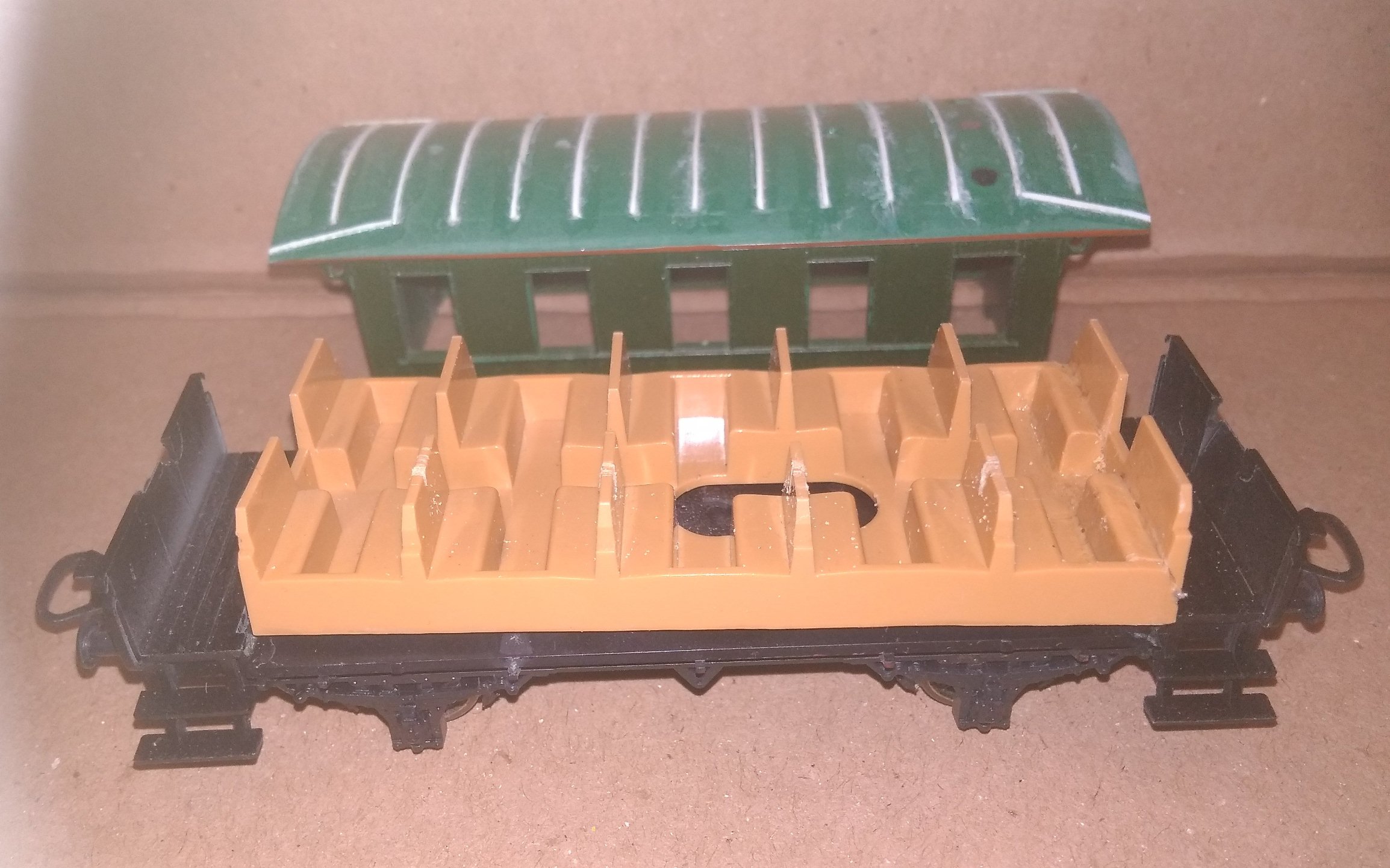 Потом наступил черед интерьера. Сначала хотел переделать штатный, но потом решил, что лучше сделать с нуля, а имеющийся переставить в другой вагон, что попался без интерьера.