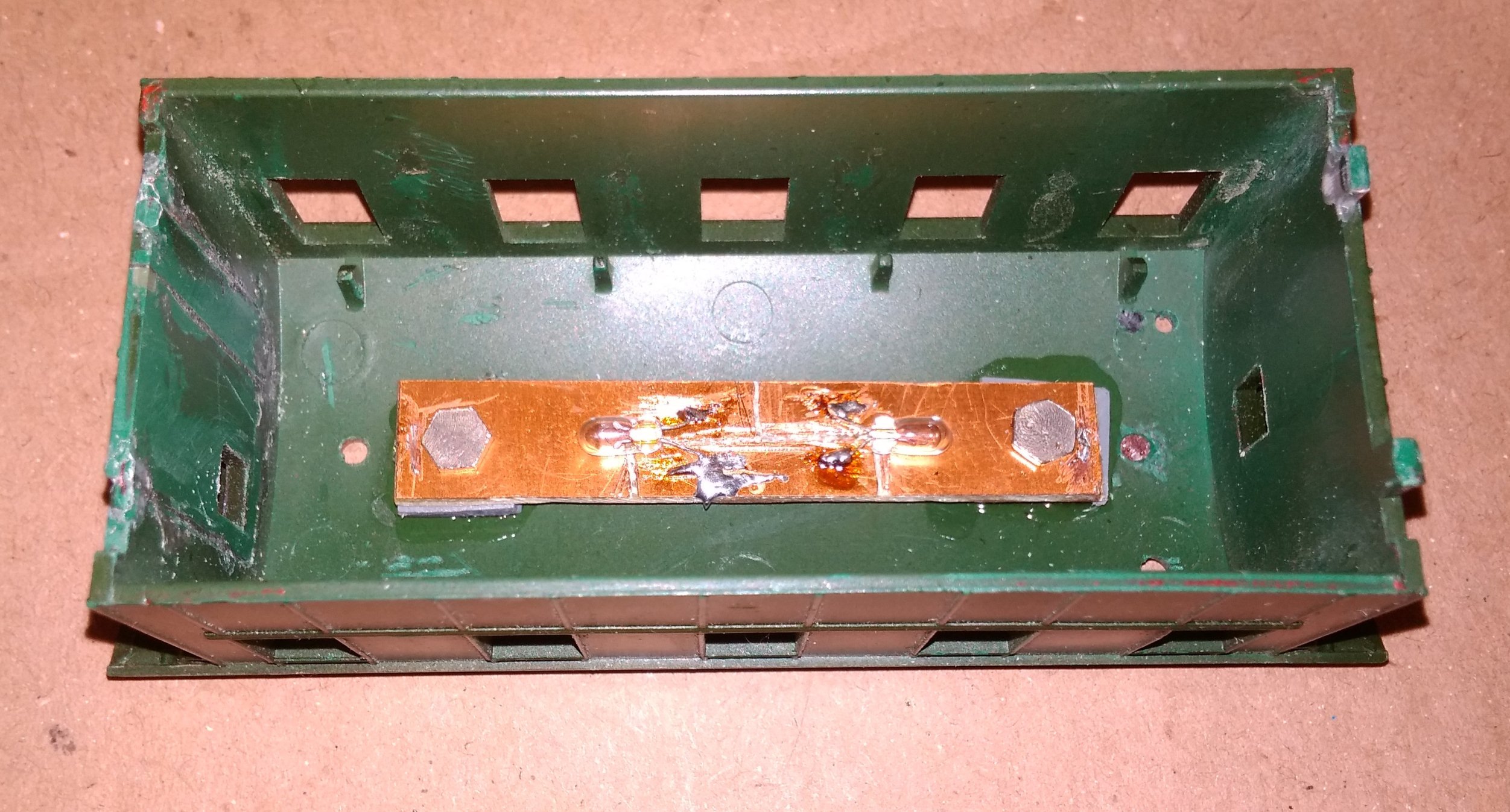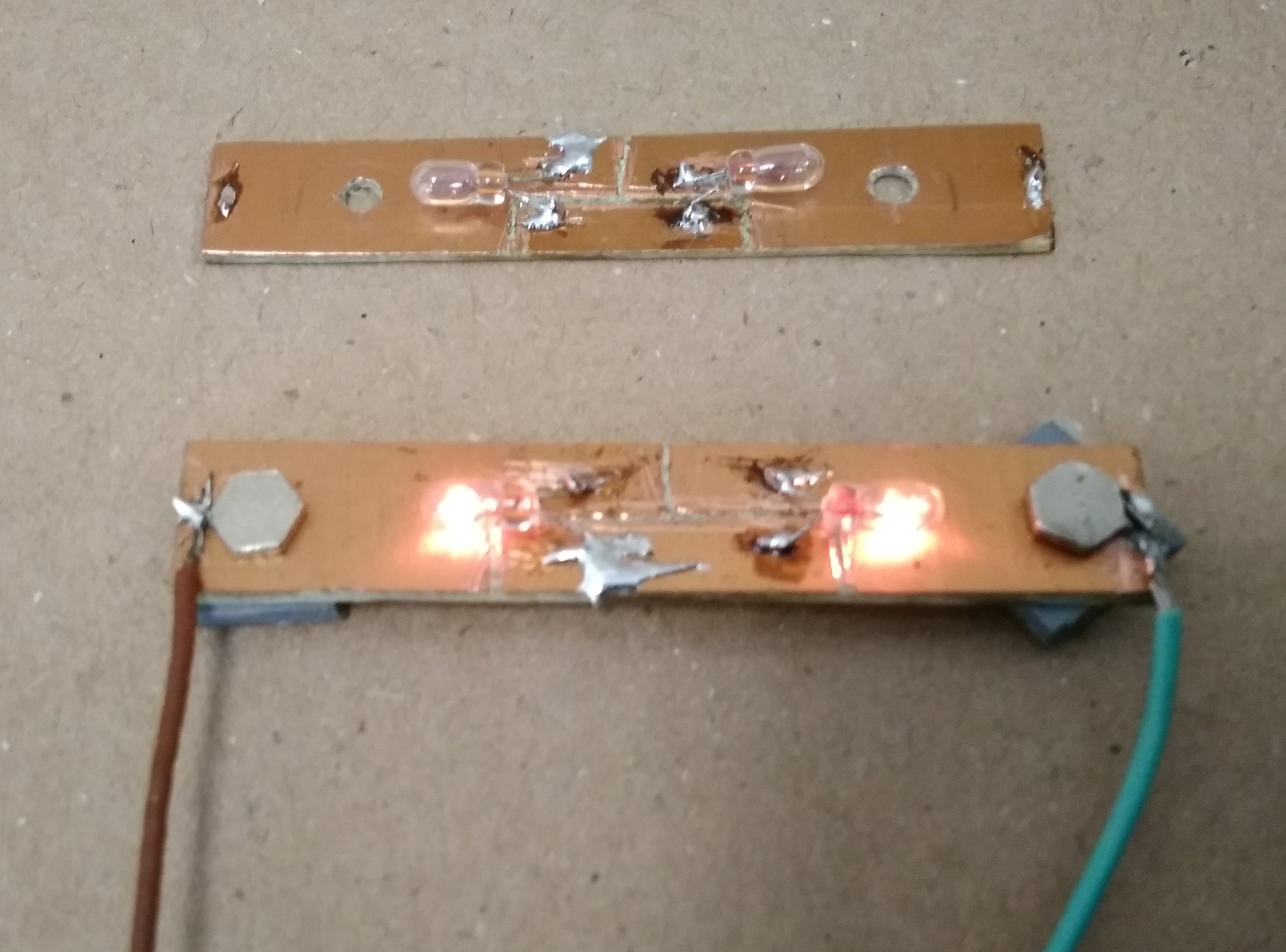 Раньше говорил об освещении вагона, вот как это всё выглядит. Плата с лампочками и её установка в вагоне. Неподключенная - от четырехоконника.