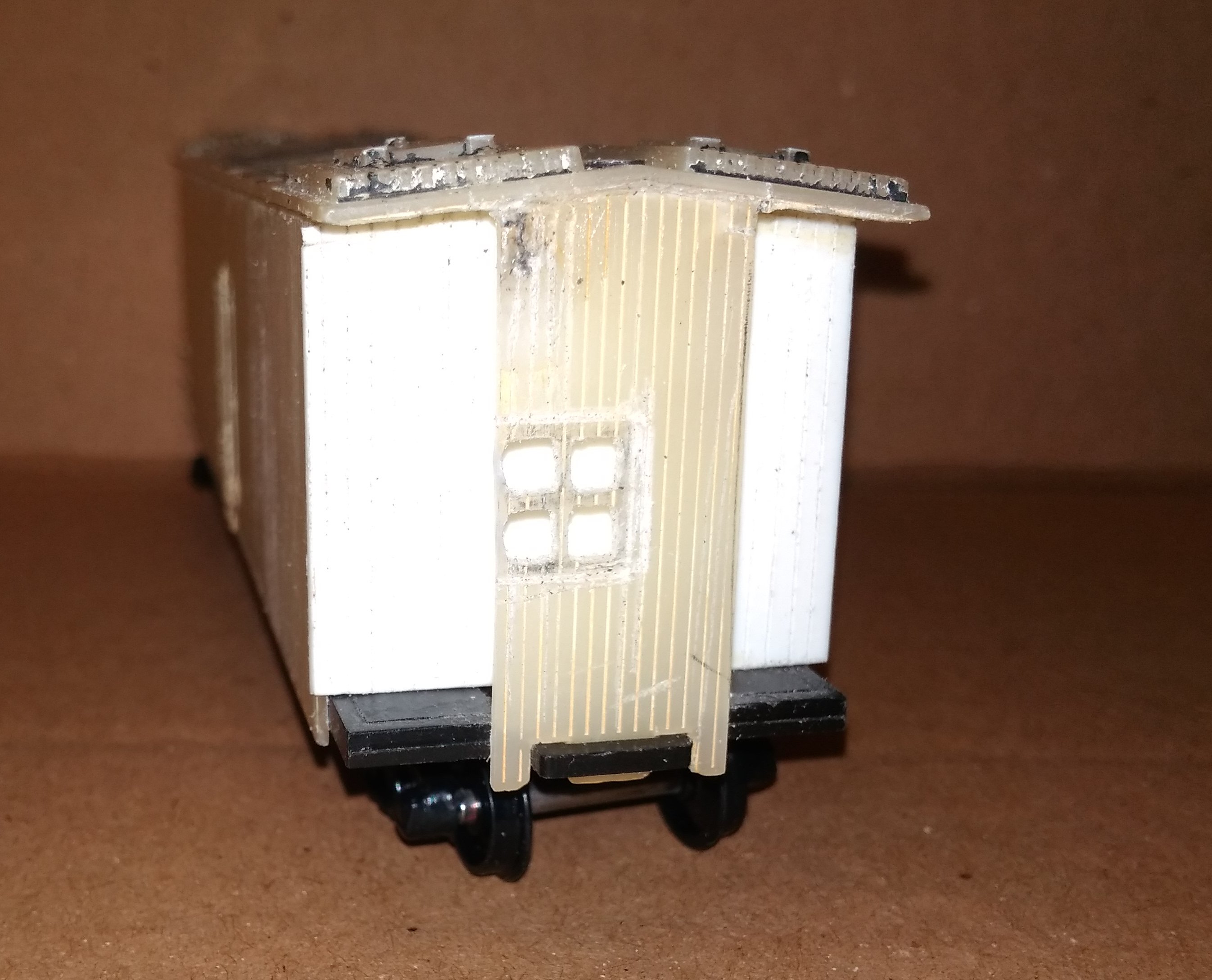 Жалко фото таких вагонов, что я нашел, не очень информативные насчет этой самой будки. Так что, будем считать переделка «на тему» ледника. Тем более расшивка досок вертикальная, а не горизонтальная, как на оригинале. И пока всё находится на такой стадии.
