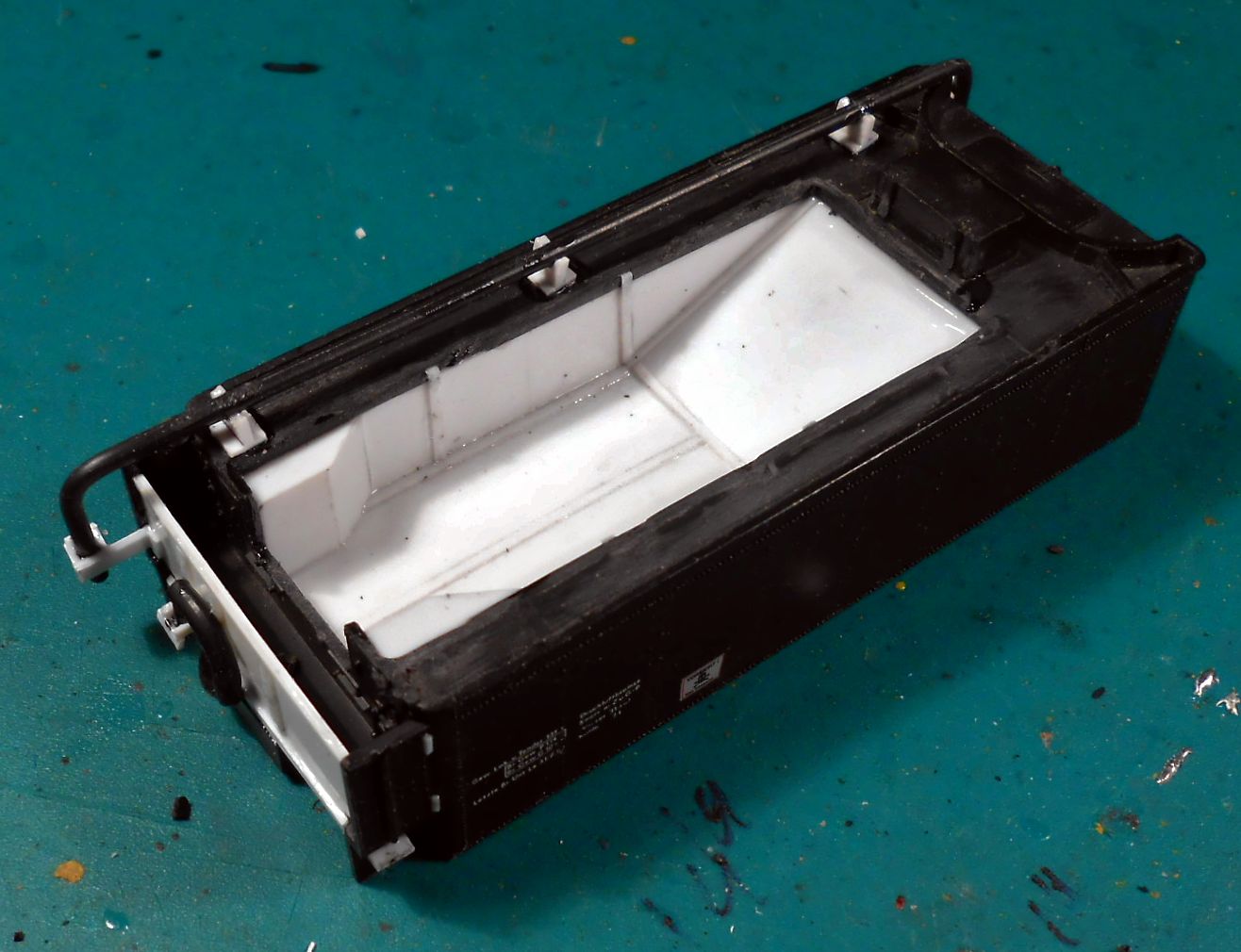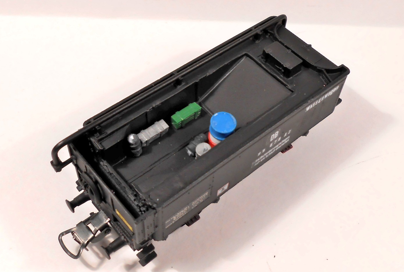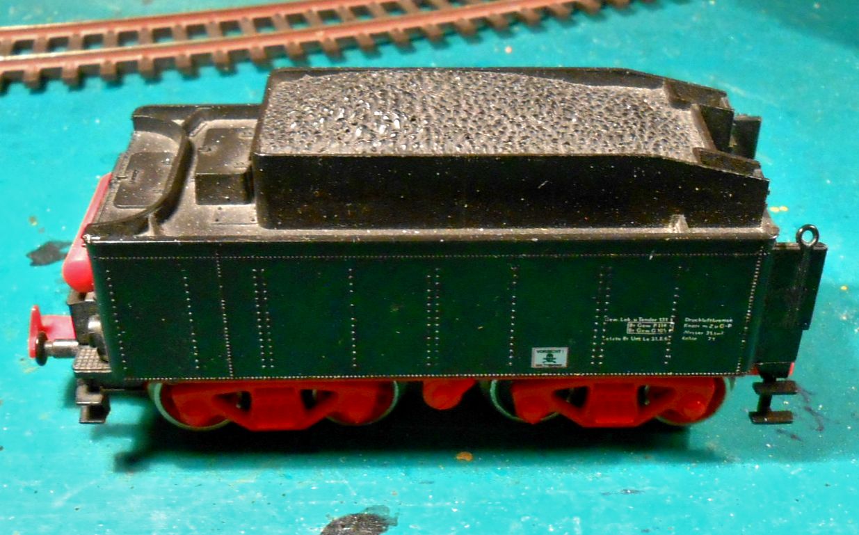 Первенец в этой эпопее старый(списанный мной из поездной работы)тендер от Лимы. Дремель в лапу и понеслась.Отрезал угольный ящик(по сути сделал его пустым) и