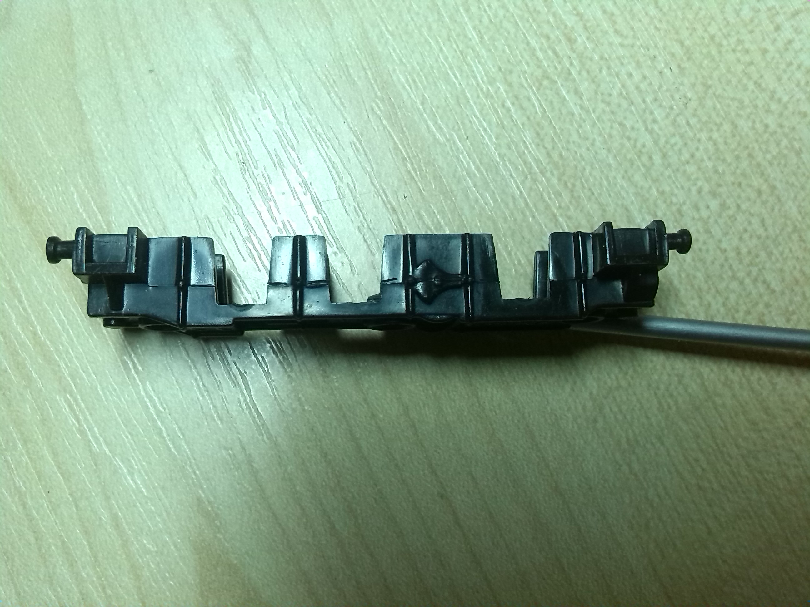 Разобрал его по частям: корпус был приклепан к раме, как и все подобные машинки. Заклепки высверлил, потом в этих стойках просверлил отверстия и нарезал резьбу под болт М2. Это для крепления всех частей.