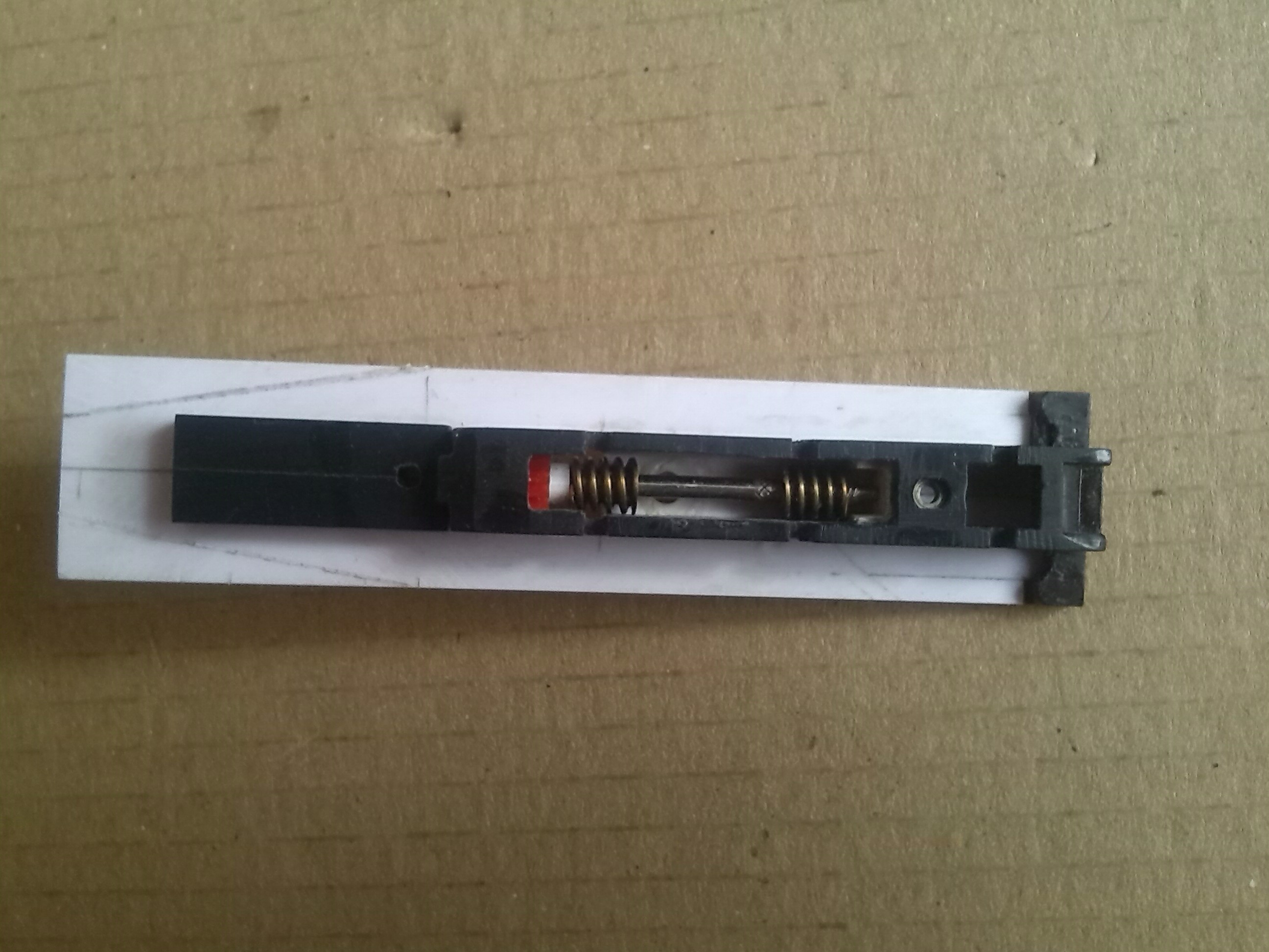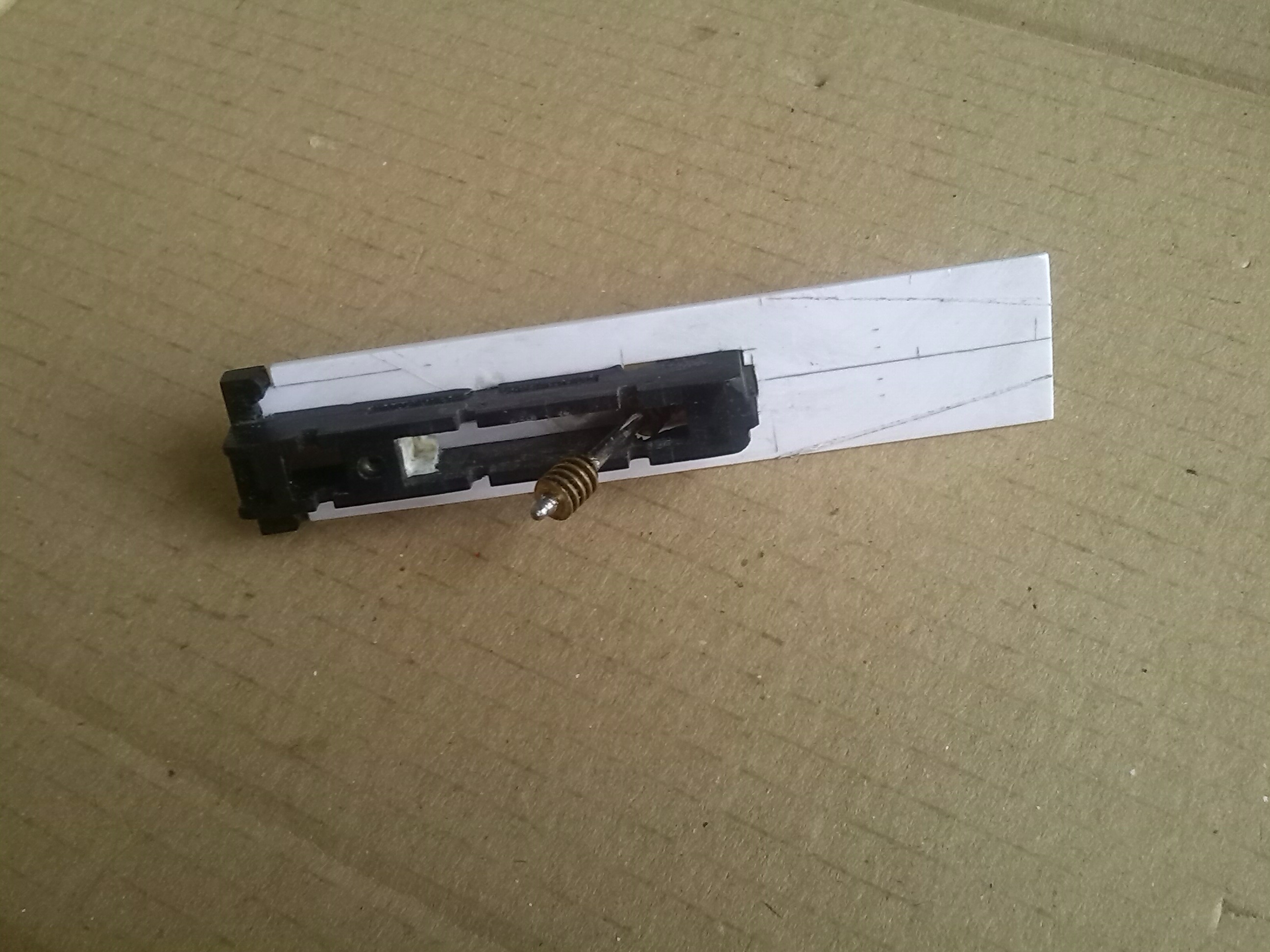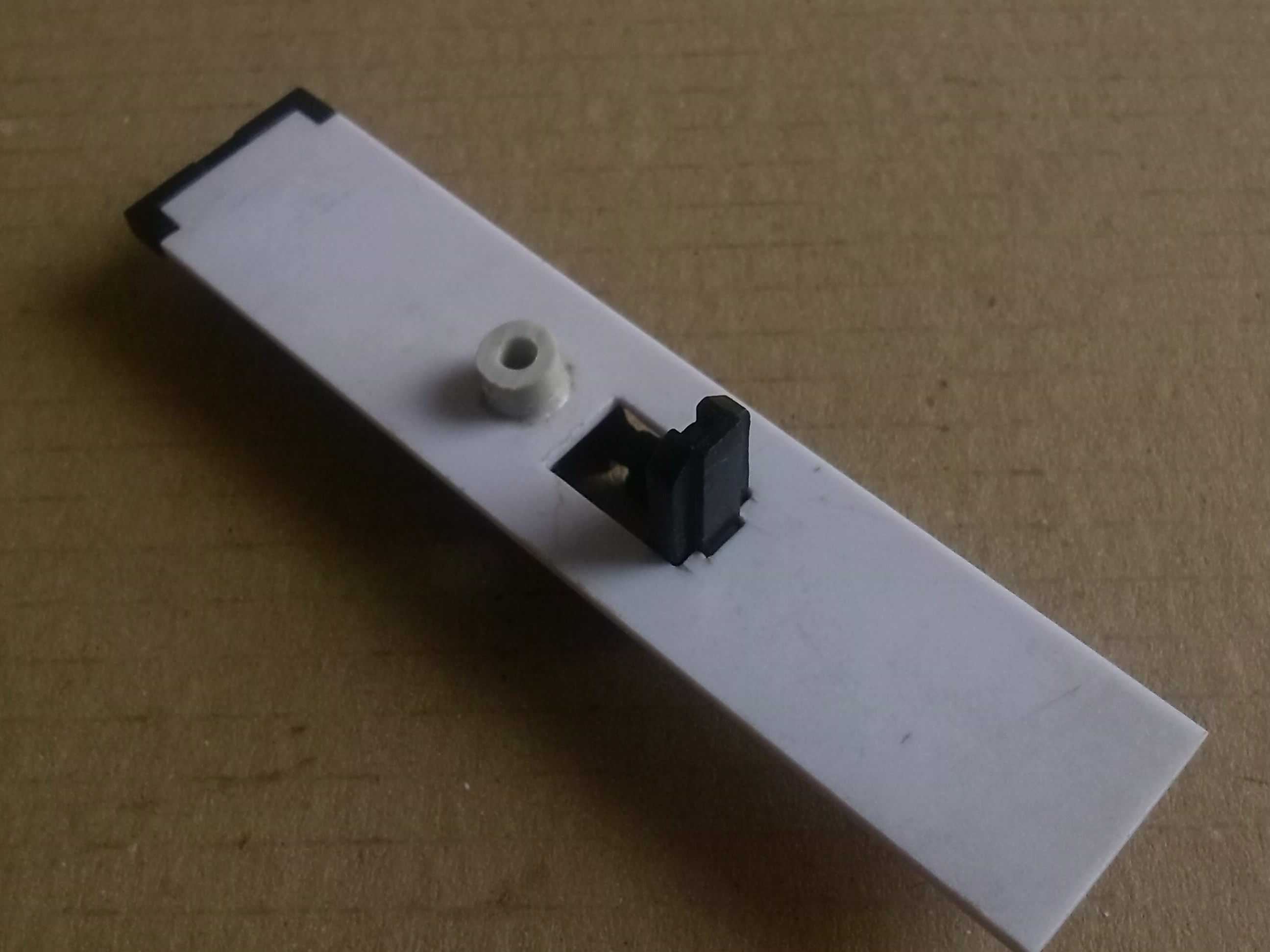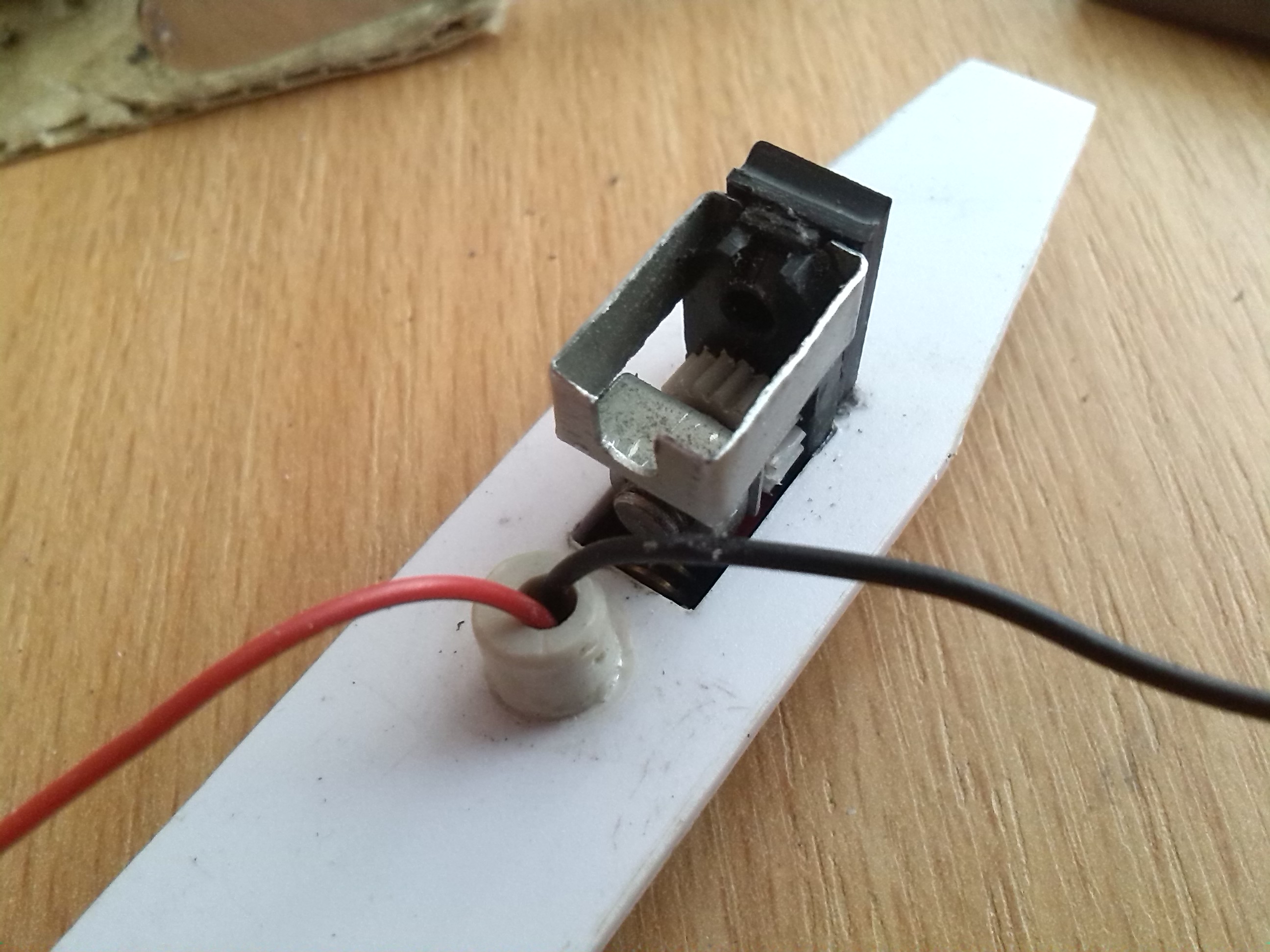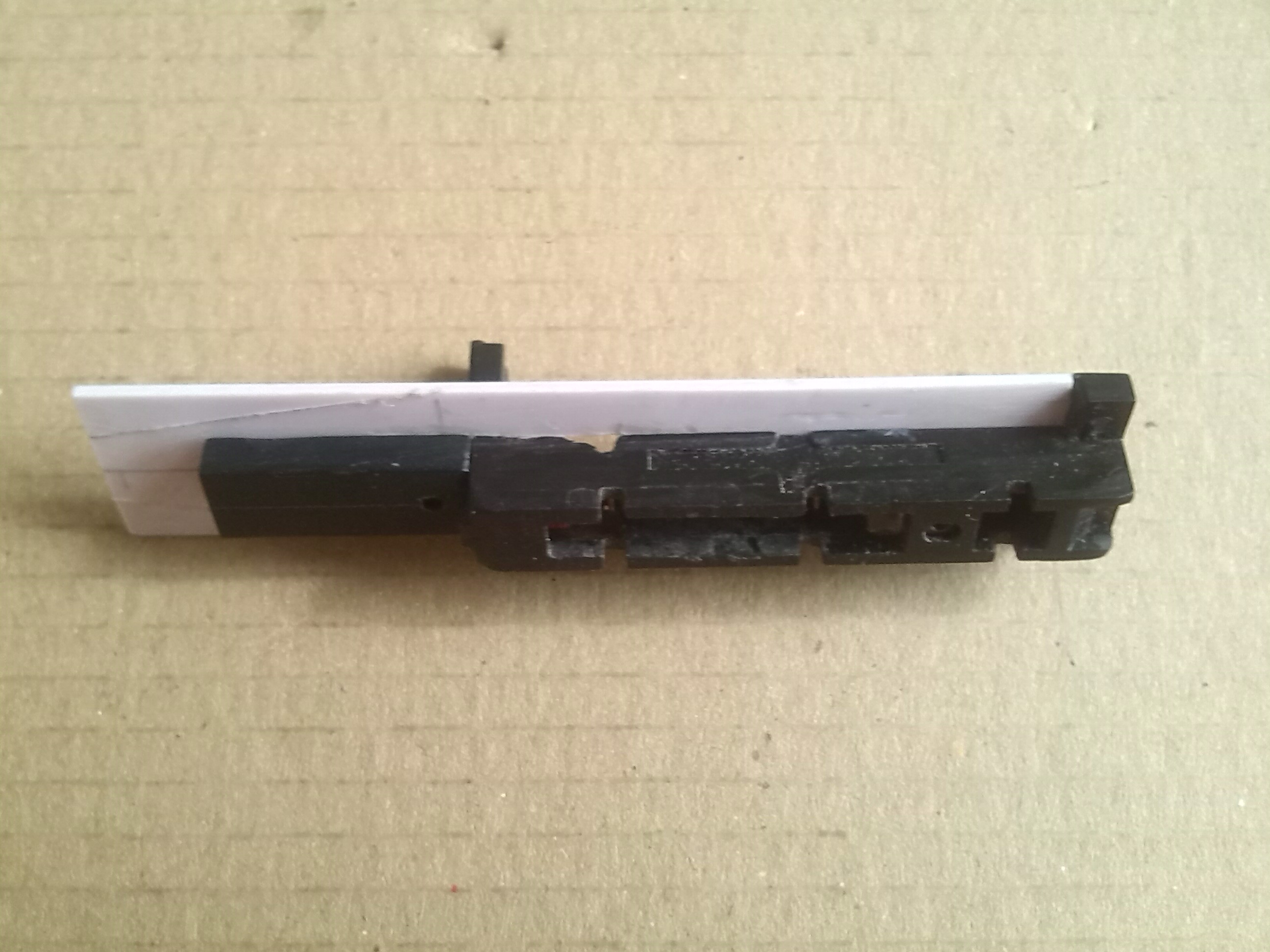 В тележке вырезал пазы для установки контактов и сделал выборку для колес передней двухосной тележки и отверстие под винт, который будет держать эту тележку.