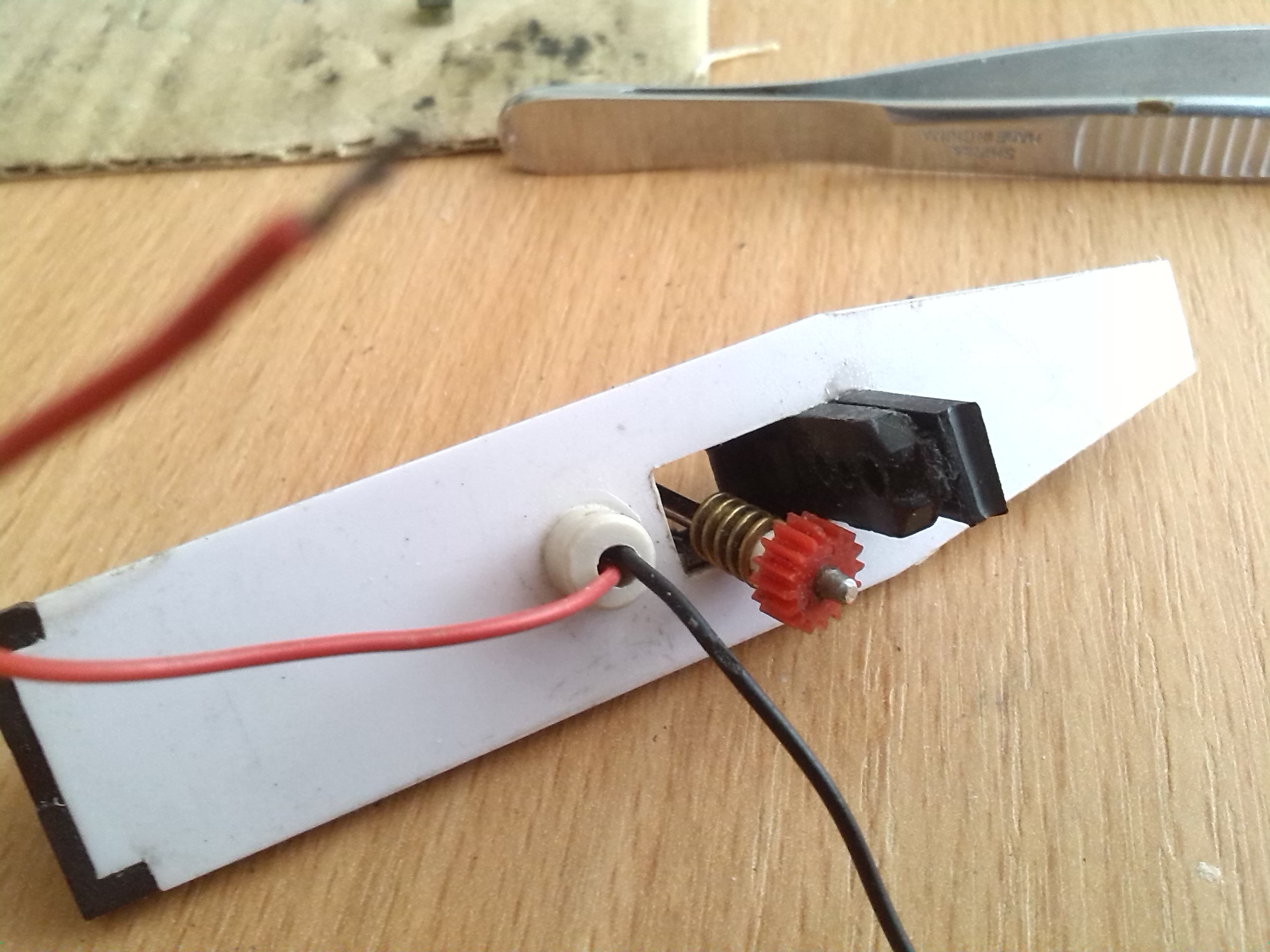 Вот это редуктор. Убил на него кучу времени. Теперь то я понимаю что получилась хрень какая-то. Но тогда ничего лучшего в голову не пришло. Использовал родные шестеренки. Других с такими же зубцами не было, поэтому что-то другое сделать не было возможности.