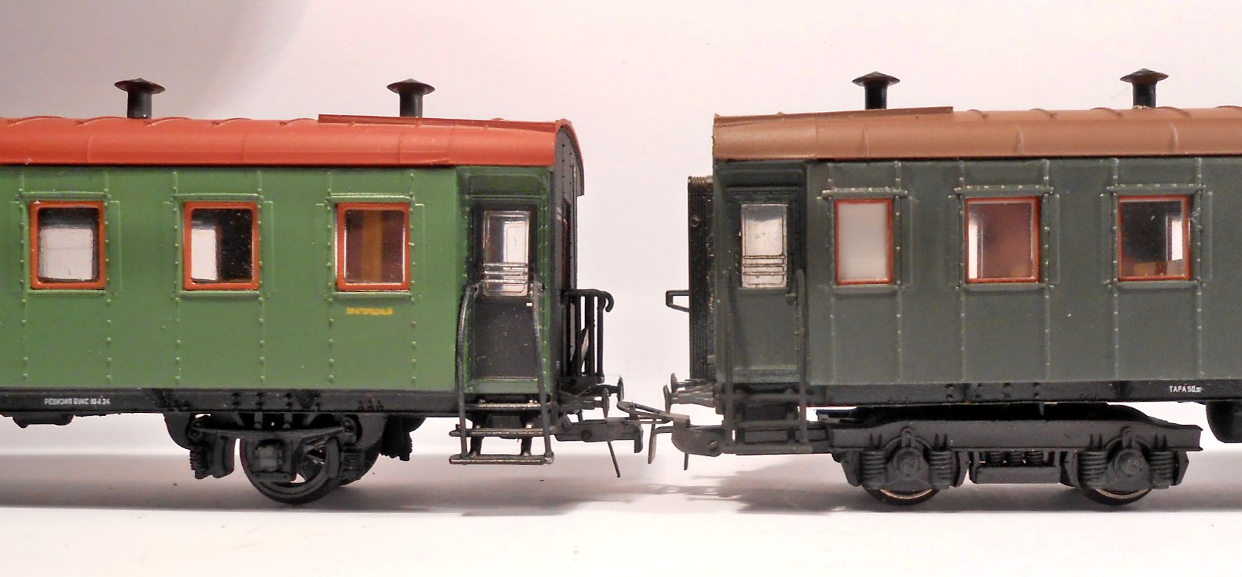 заменить на Трикс.После чего накат стал великолепный. В сцепе с двухосными донорами смотрится отлично.Мне даже нравится что тональность другая. Уже после фотографирования подкрасил решетки на окнах и ручки на дверях.Последний штрих. Вагон получился довольно тяжелый и интересный.Теперь предстоит тестирование на макете.