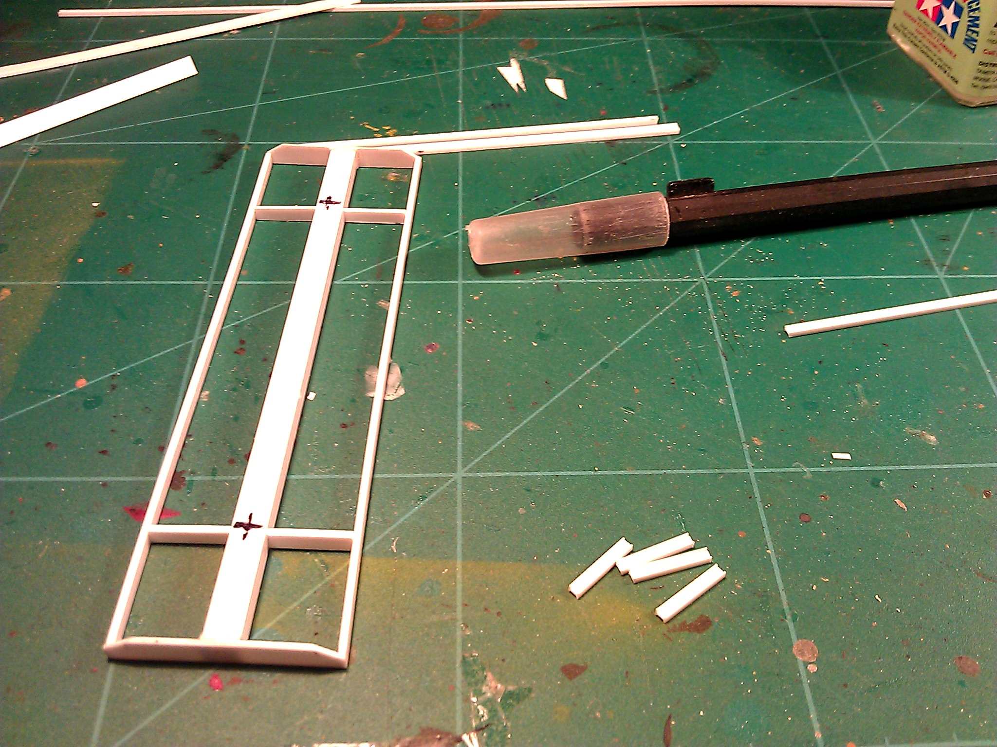 Начало вагона родил как обычно,с рамы.Добавил поперечины,для укрепления и ровности конструкции.