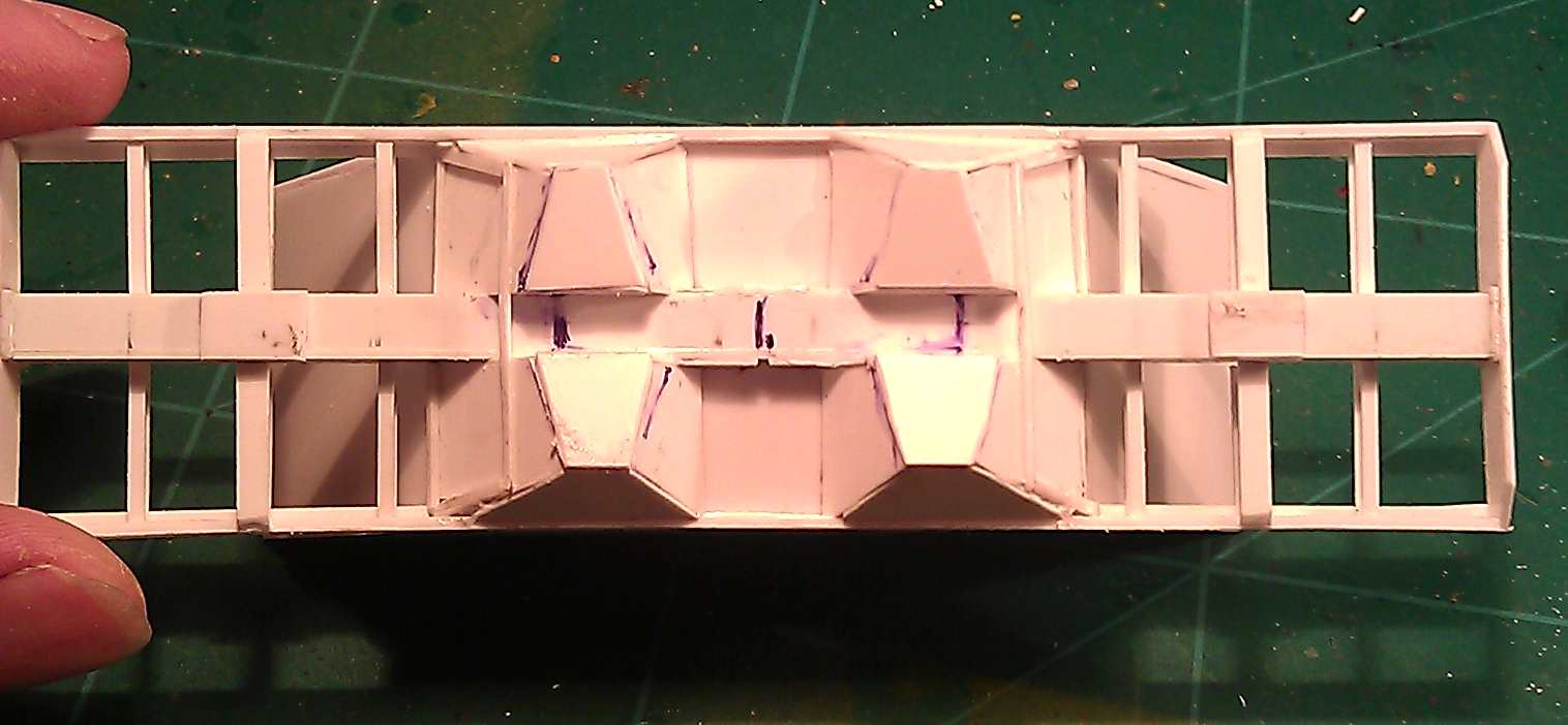 Затем начинаю "гнать" кузов.Важно было не промахнуться с углами наклона.Полистирол 1мм.Сложно работать.
