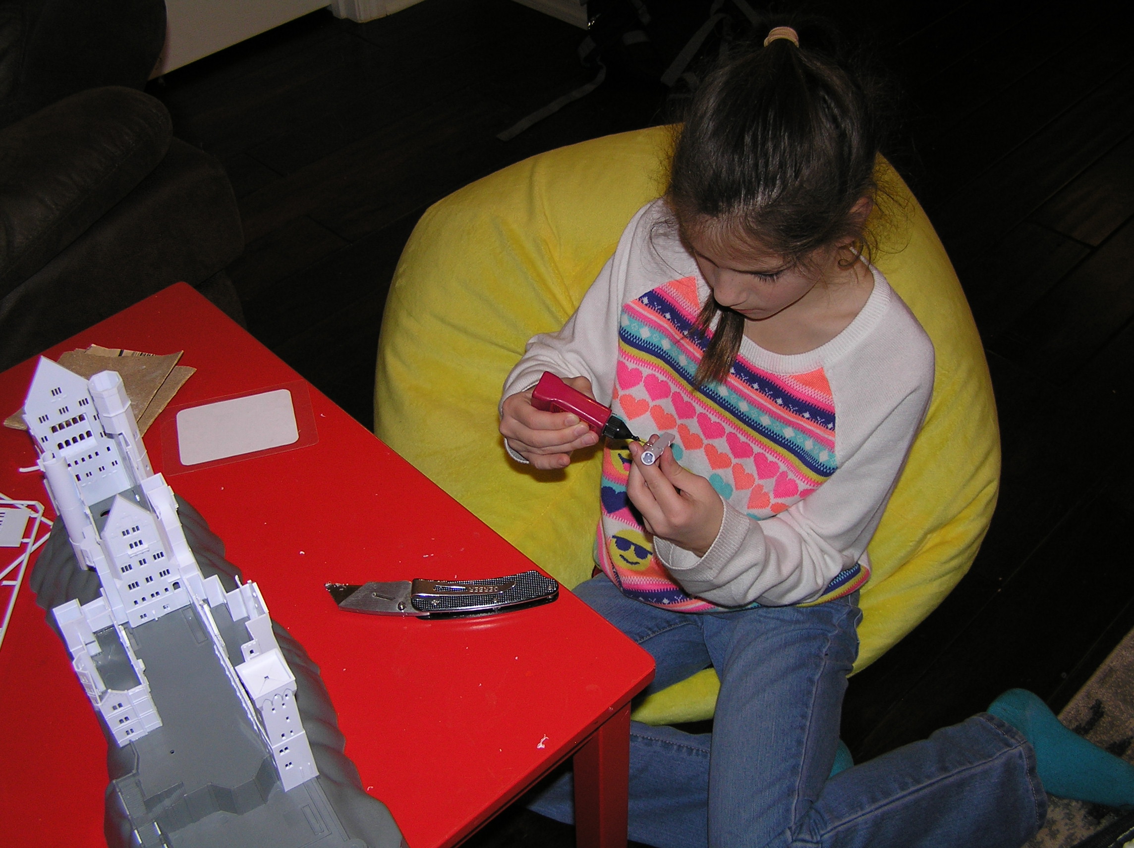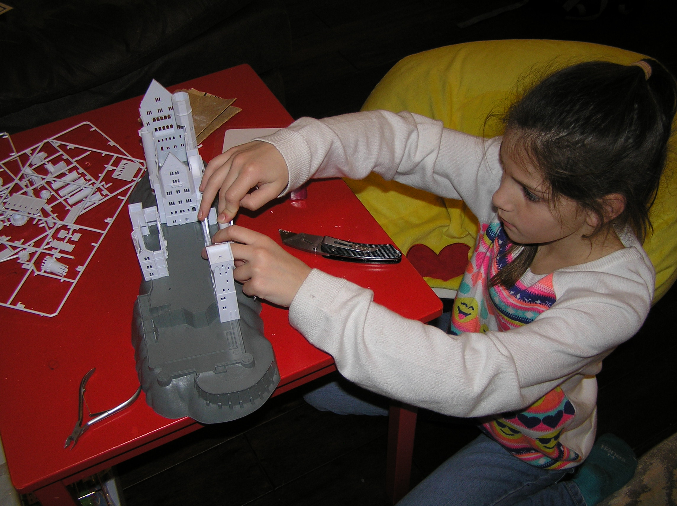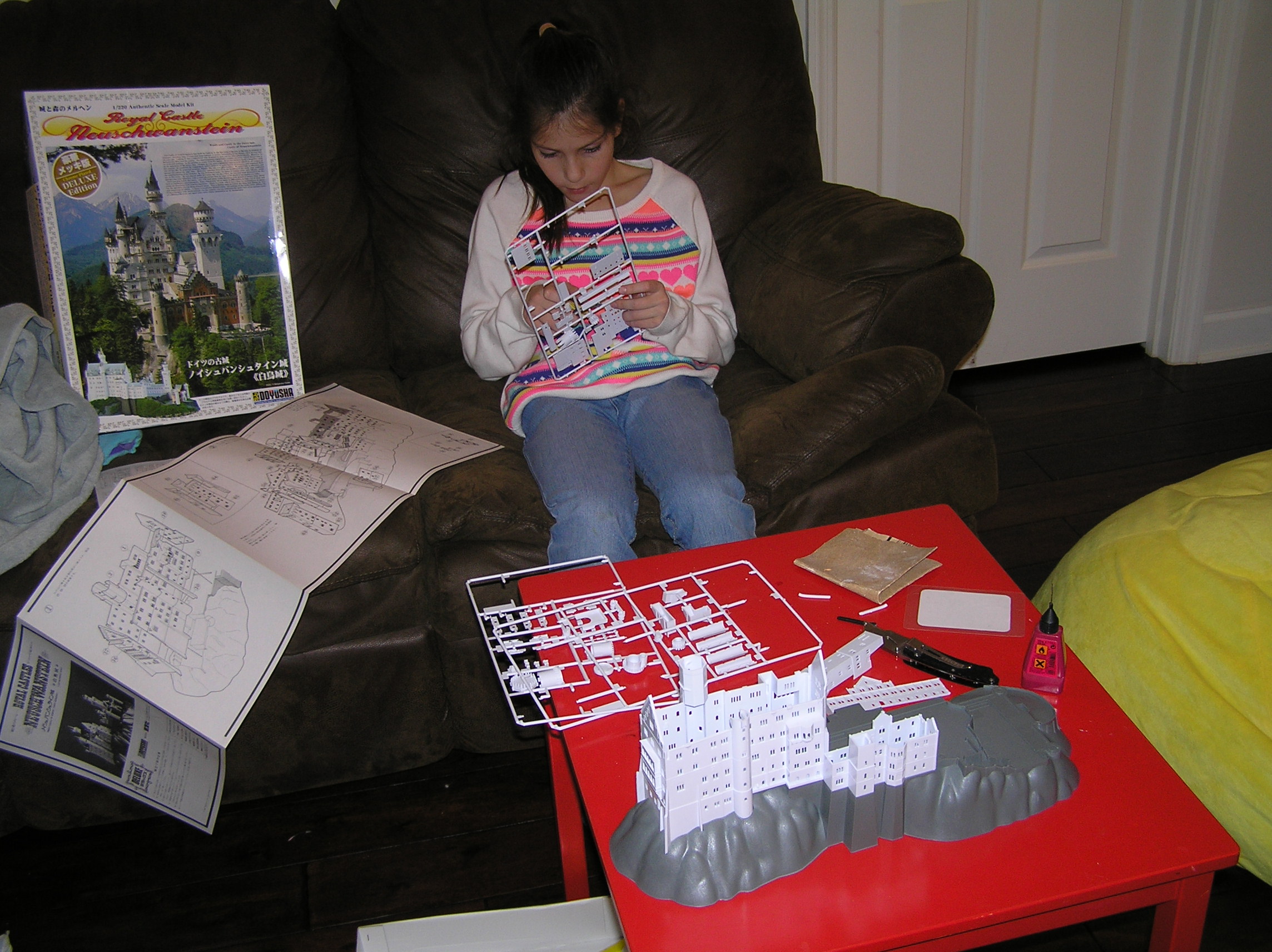 К сожалению мы переехали и Томас с рельсами и вокзалом мы не могли взять с собой. На день рождения в 7 лет, она получила в подарок модель замка. Но модель оказалась слишком сложная из-за мелких деталей и долгое время лежала несобранная. И вот наконец на рождественских каникулах, когда пришло время, совершилось чудо, мы добрались до склейки очень-очень красивого замка. И получилось еще лучше чем я себе представляла. А началось все с большой красивой коробки :D