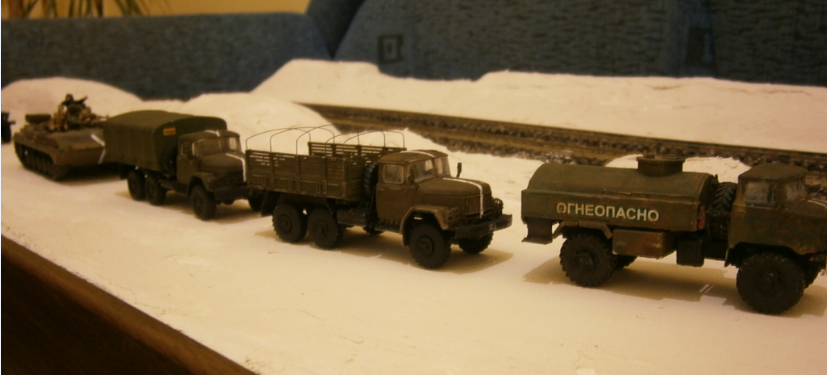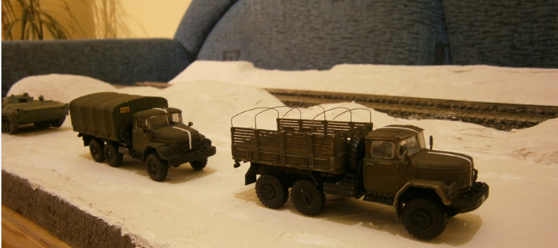 А почему выбран масштаб 1.72? Они же большущие для макета, грузовик размером с дом получается). Газ 66 вообще на себя не похож... Все эти модели есть в правильном 87-м масштабе, по качеству, однозначно лучше чем ICM.
