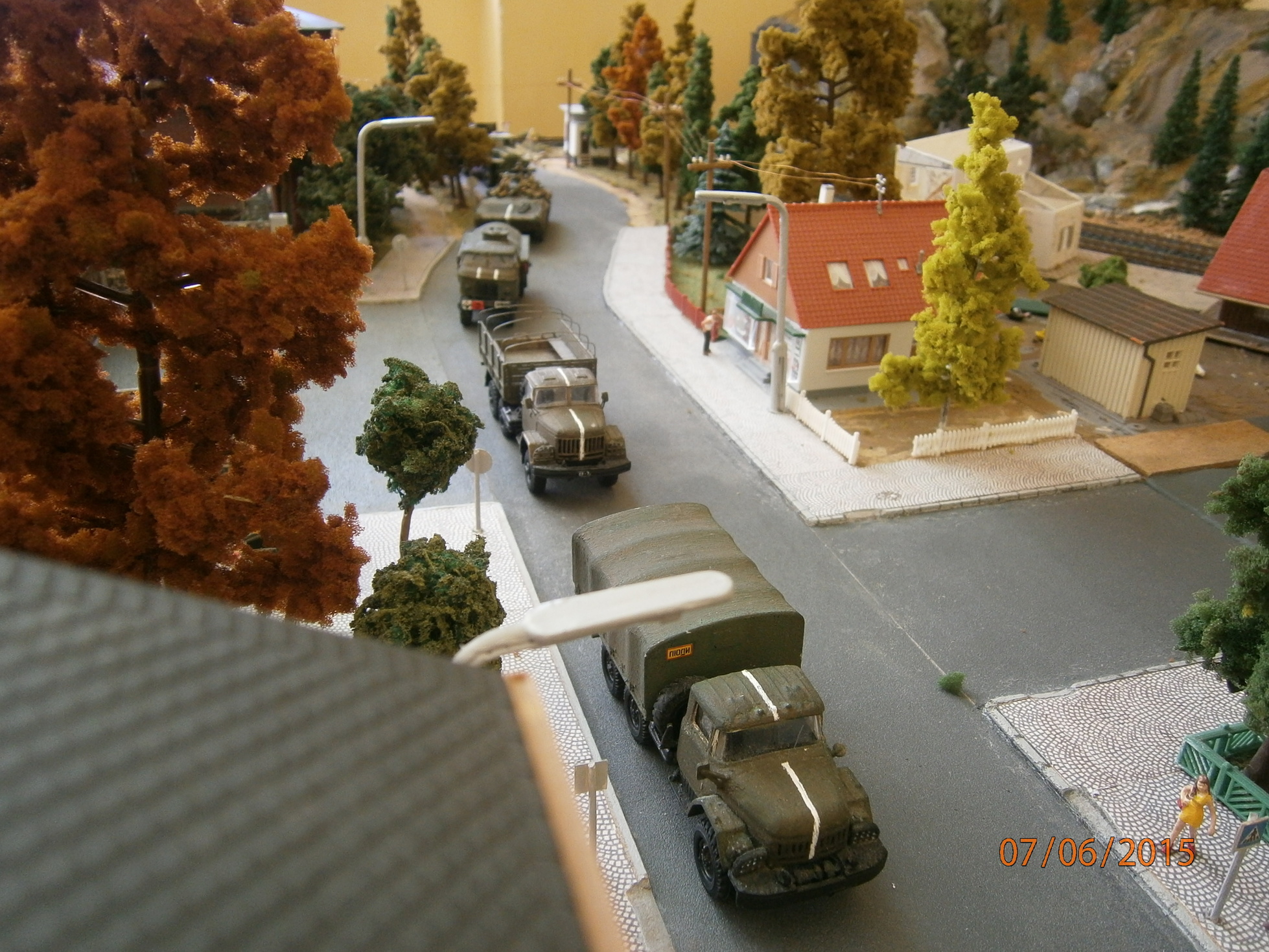 Тільки рельси будуть1/87. А на макеті "Замкова гора", я просто розтавив їх (техніку)для порівняння. Виглядає дійсно все великим....БМП напів будинку :)