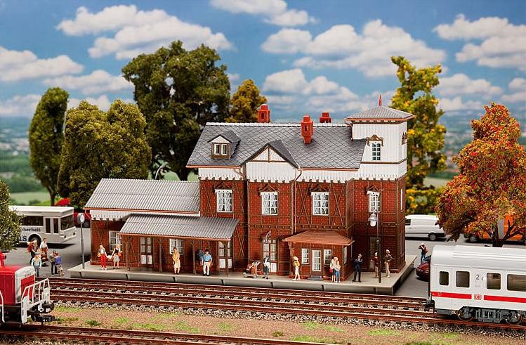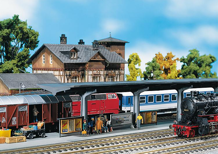 В наборі вокзал, депо, перон, перехід і крамничка. Купляв його досить давно, коли ціни були ще досить помірковані ;)