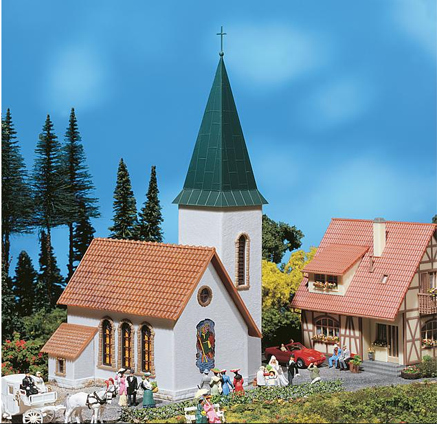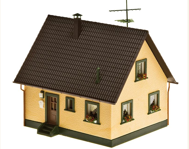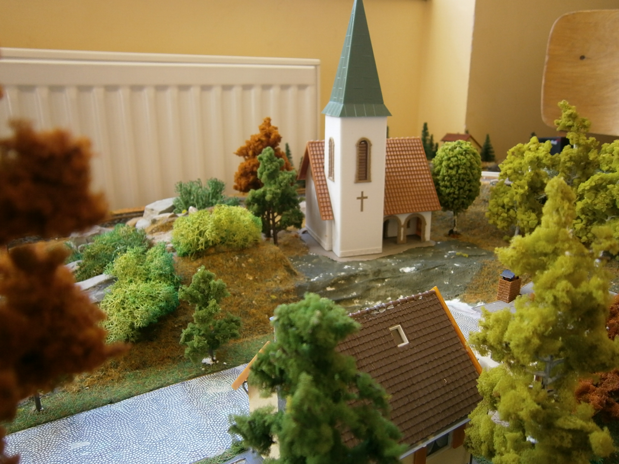 В комплект входив: блок пост, два будинки, церква і вокзал. Вокзал мені був не потрібний і я його продав не зібраним, а от все решта знайшло свое місце ;)