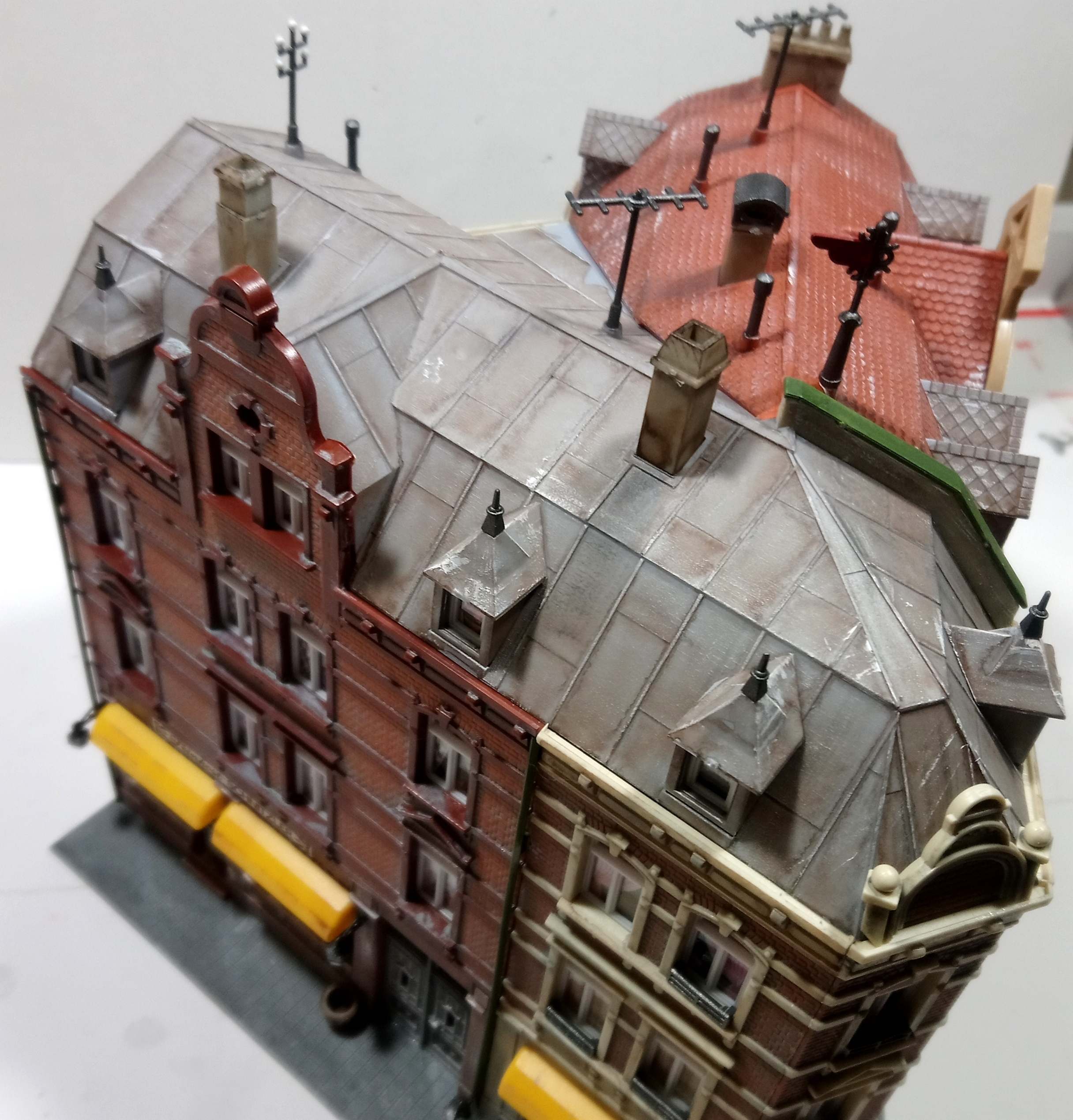 Пришлось местами проклеивать.После высеринга и сборки результат получился таким. Реально шикарная немецкая архитектура!Эффектное, крупное здание.Самое большое на макете.