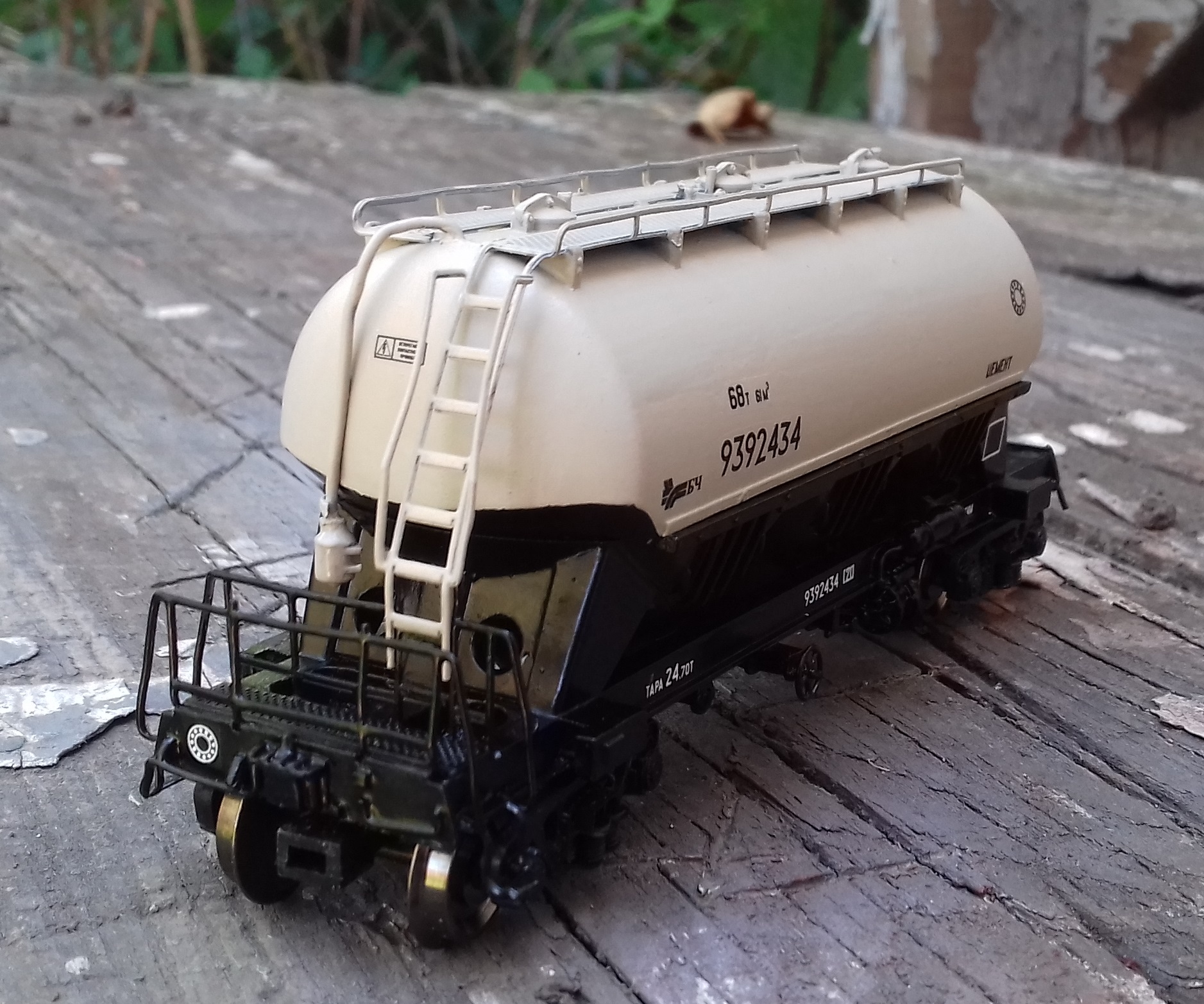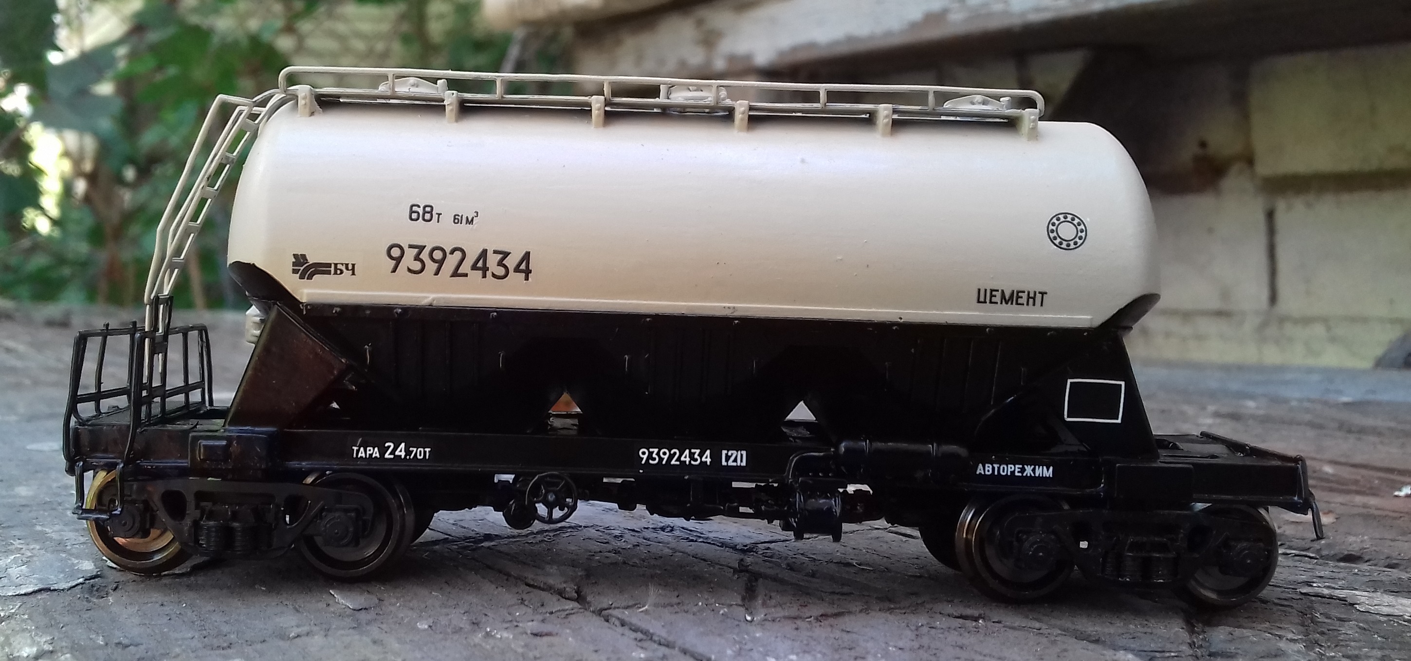 Отмечу, что у меня была модель этого вагона. В ливрее СЖД, фотографий к сожалению не сохранилось, потому стянул картинку из чужой коллекции: Расстался с ним потому, что качество сборки было мягко говоря неудовлетворительное. Покупал через интернет, продавец (как это у нас любят) выложил картинки с сайта "Моделы", а не фото реального изделия. У модели был криво приклеен котел к раме, и меня это раздражало (другие косяки тоже имелись). Решил избавиться, и почти год спустя, собрал такой же вагон сам.