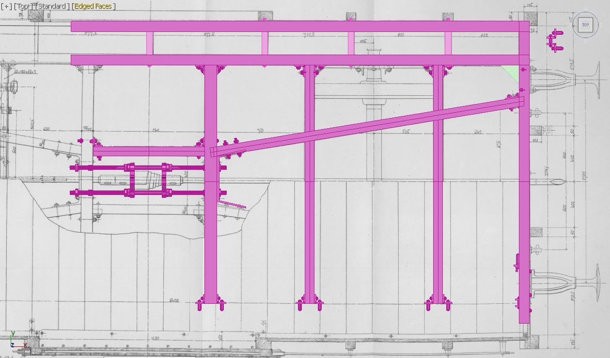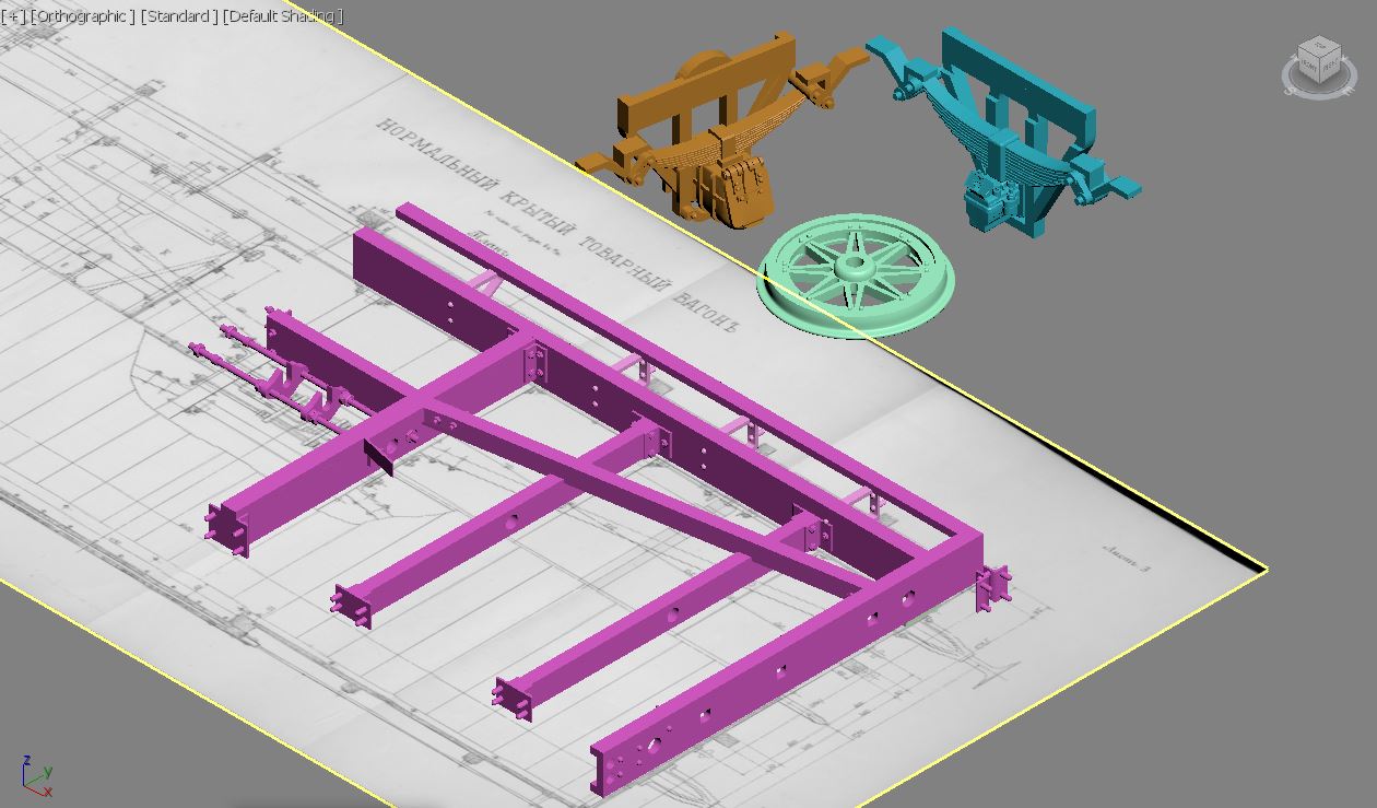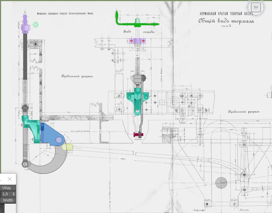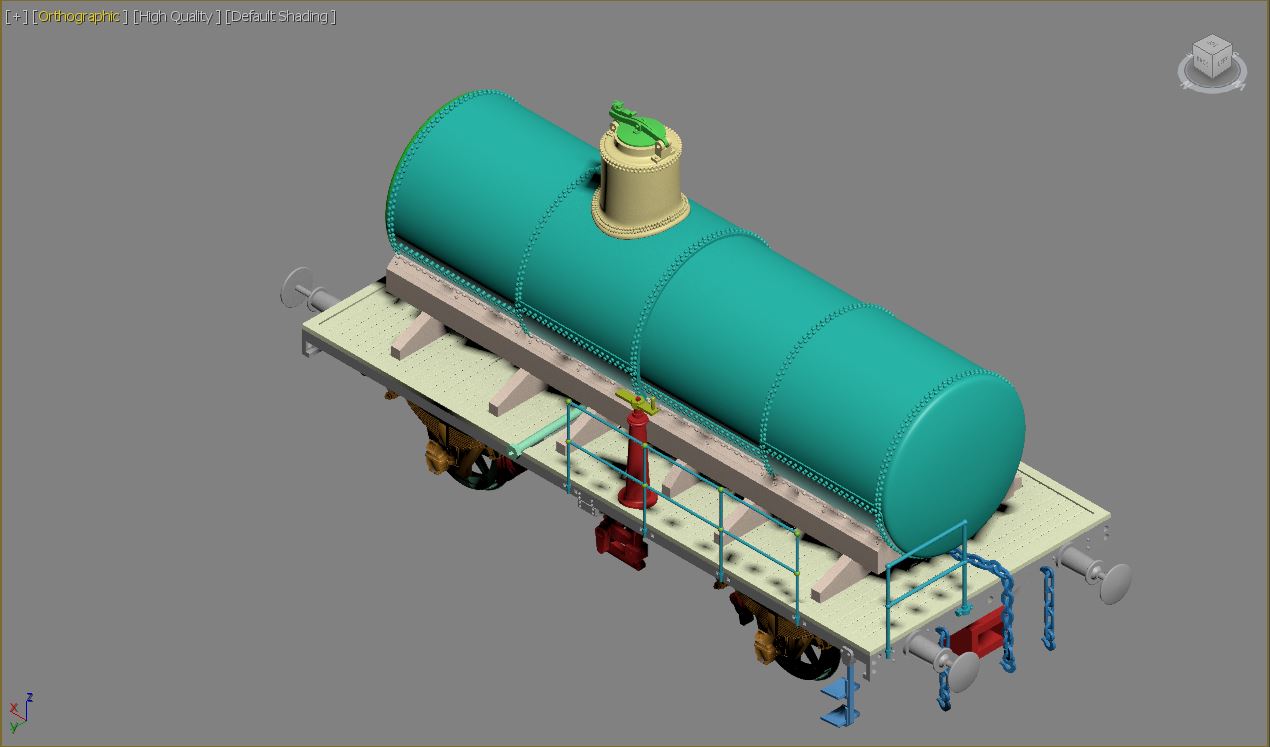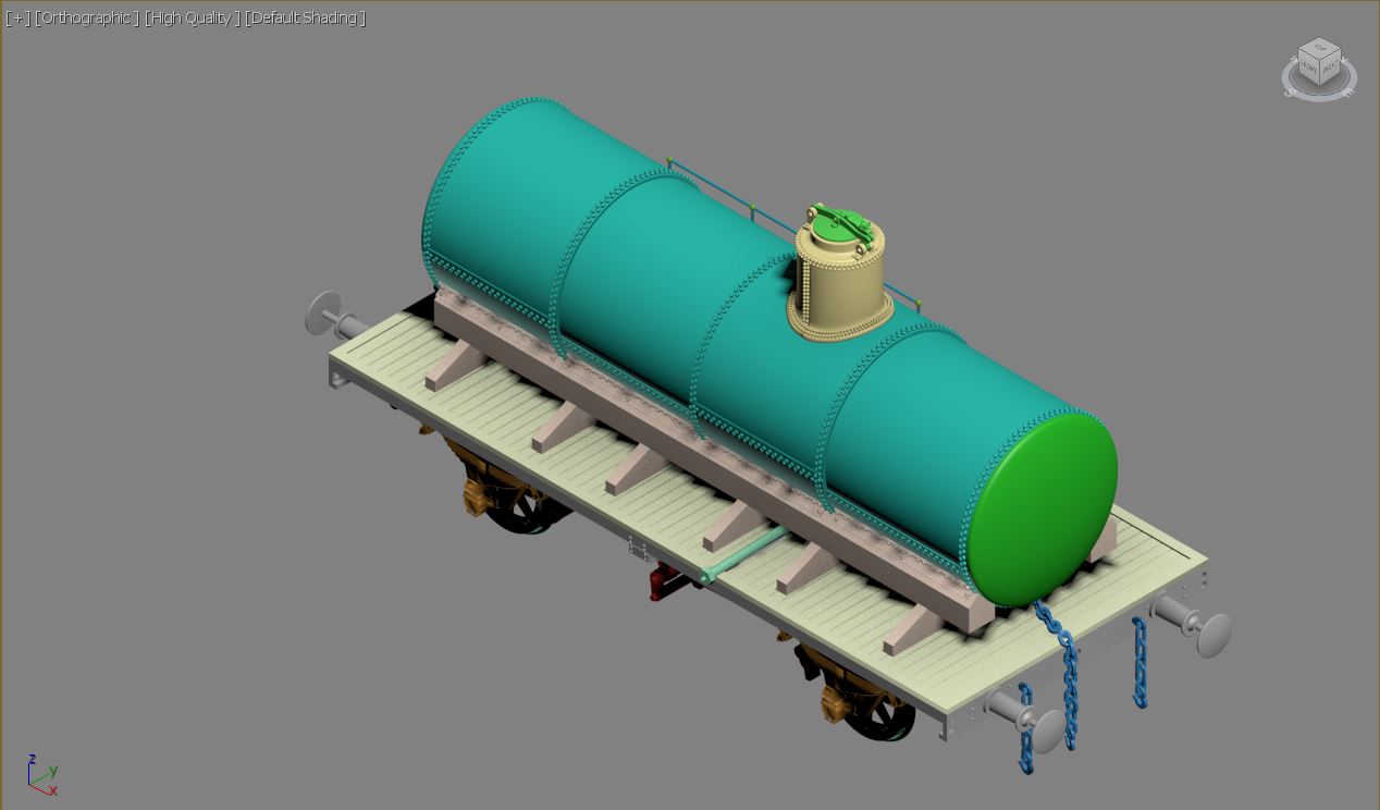 На одной из картинок видно, что присутствуют еще тяги квадратного сечения, на чертеже это увы не показано, но учитывая, ручную работу по изготовлению цистерн и видя другие детали того времени, я предположил, что скорее всего тяги были квадратного сечения, кто что думает по сему поводу? Ну и немного самой модели, что вырисовалось.
