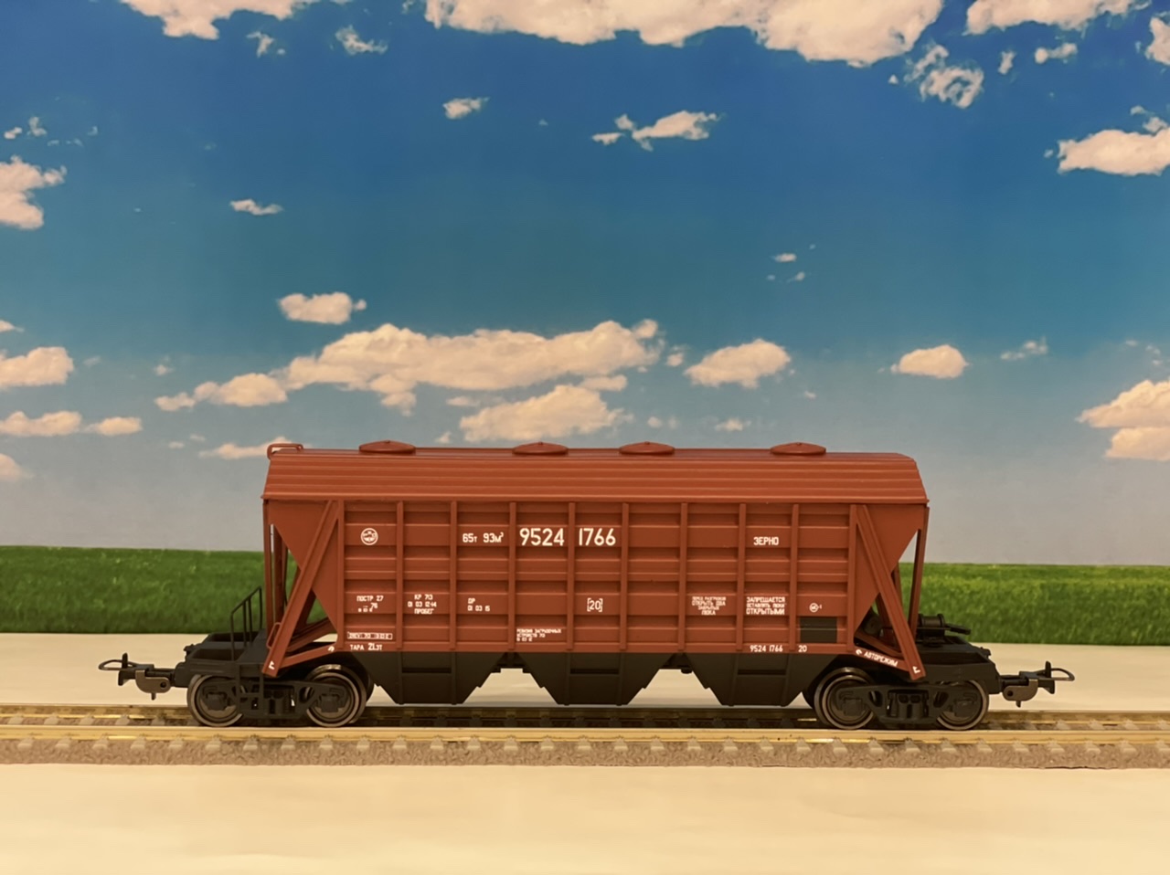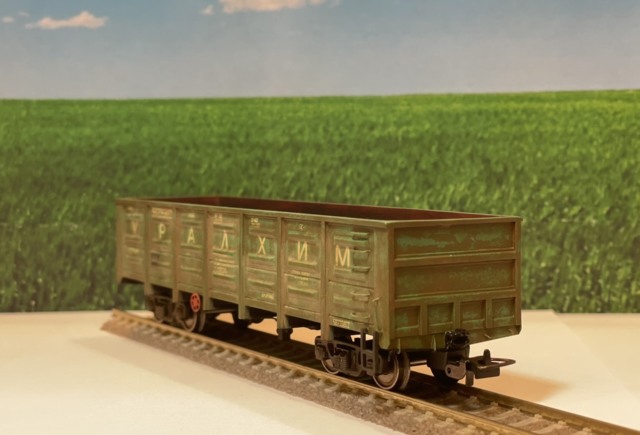 Изначально хотел накрыть вагоны тентом, но как то коряво смотрелось, потом начал лепить мешки с минеральными удобрениями из художественной глины.., так же получилось не очень, поэтому оставил так..