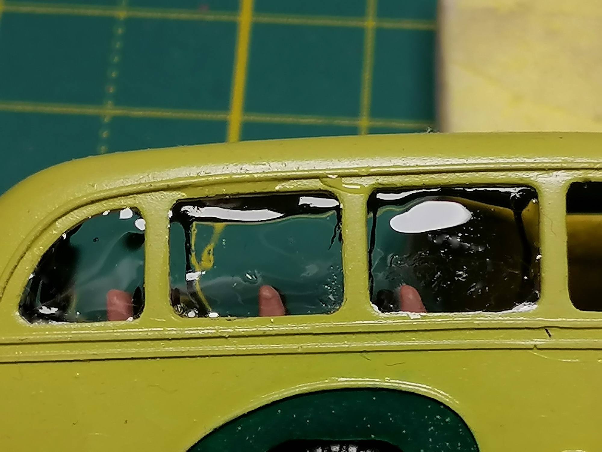 Есть вот такая штука - прозрачный гель ультрафиолетового затвердевания. Фары получаются на ура. Со стеклами сложнее. добиться ровной поверхности и равномерной толщины слоя практически невозможно. Для заполнения оконного проёма подкладывал изнутри основу от оракала, к ней гель не прилипает. Засвечиваем ультрафиолетом. Потом подложка убирается. Думаю, надо изнутри клеить плёнку не убирая её после затвердевания геля, тогда хотя бы одна сторона стекла буде ровной. Или снаружи, но это сложнее.