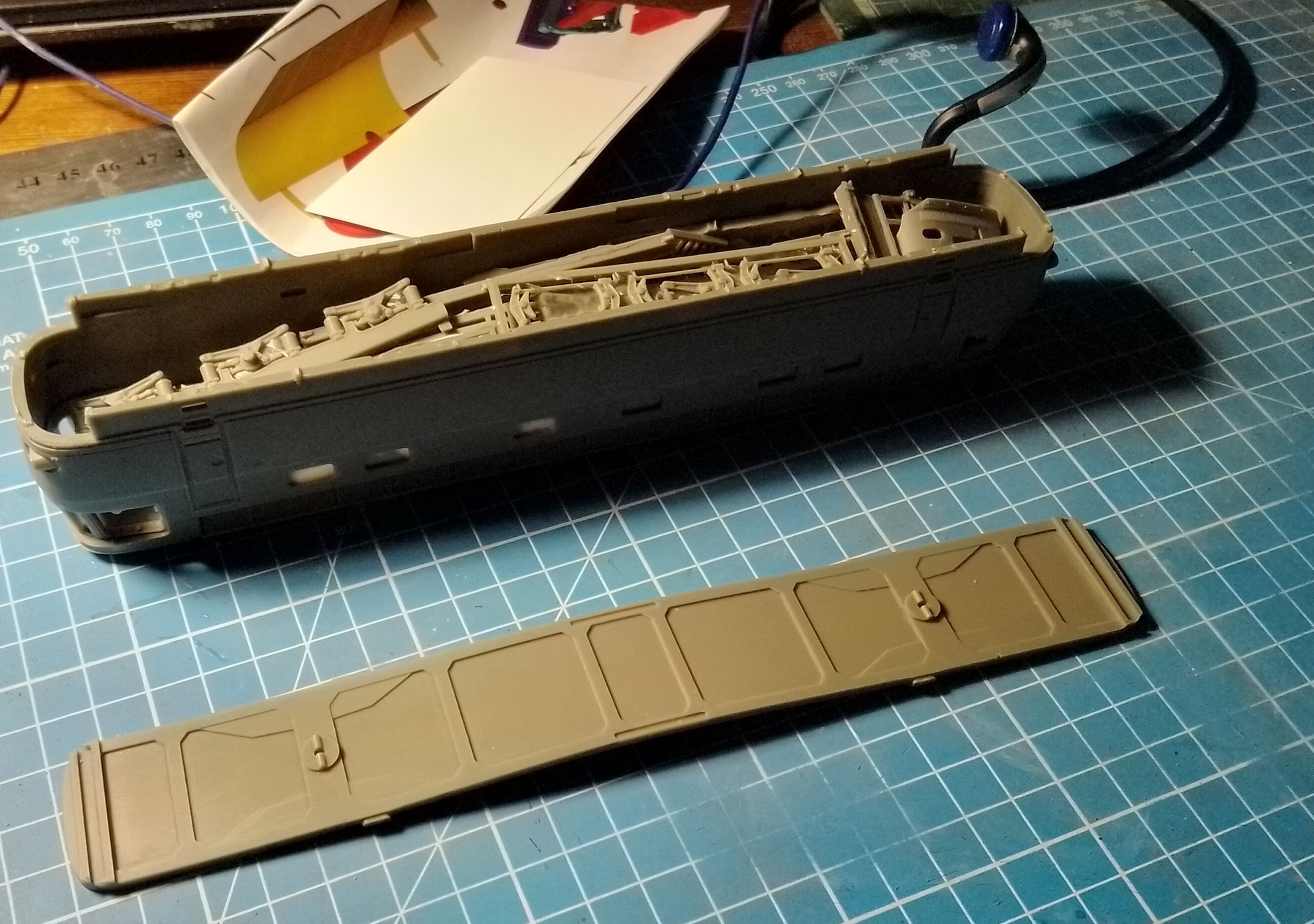 Ещё одно. По фото модели из другой ветки. Вид верхней части. Конечно, ненатурально, решетки вдоль крыши так не выглядели, но, с художественной точки зрения, это... Натурально и очень красиво. Классно! Кстати, завидев собранную модель, я, поначалу, обрадовался, неужели РТМ порадовал нас и гербами СССР к набору? Но, нет. ))) Хотя, чего огорчаться, набор отличный, производителю, как всегда, большущее уважение.