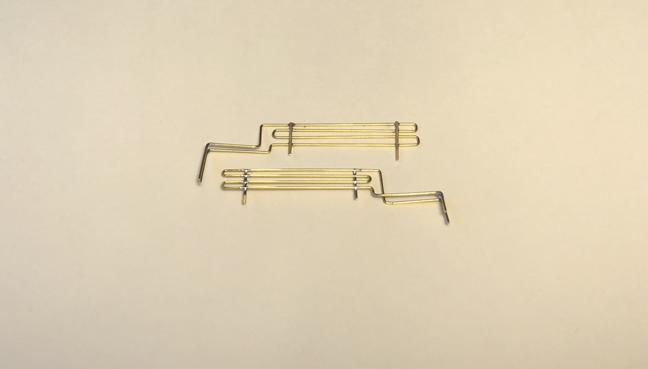 И так как травление прямоугольное.., пришлось гнуть поручни на мордах, это наверное было самое сложное, потому что гнул из стальной проволоки, а она жесткая, да еще и закруглить нужно было более менее ровно..
