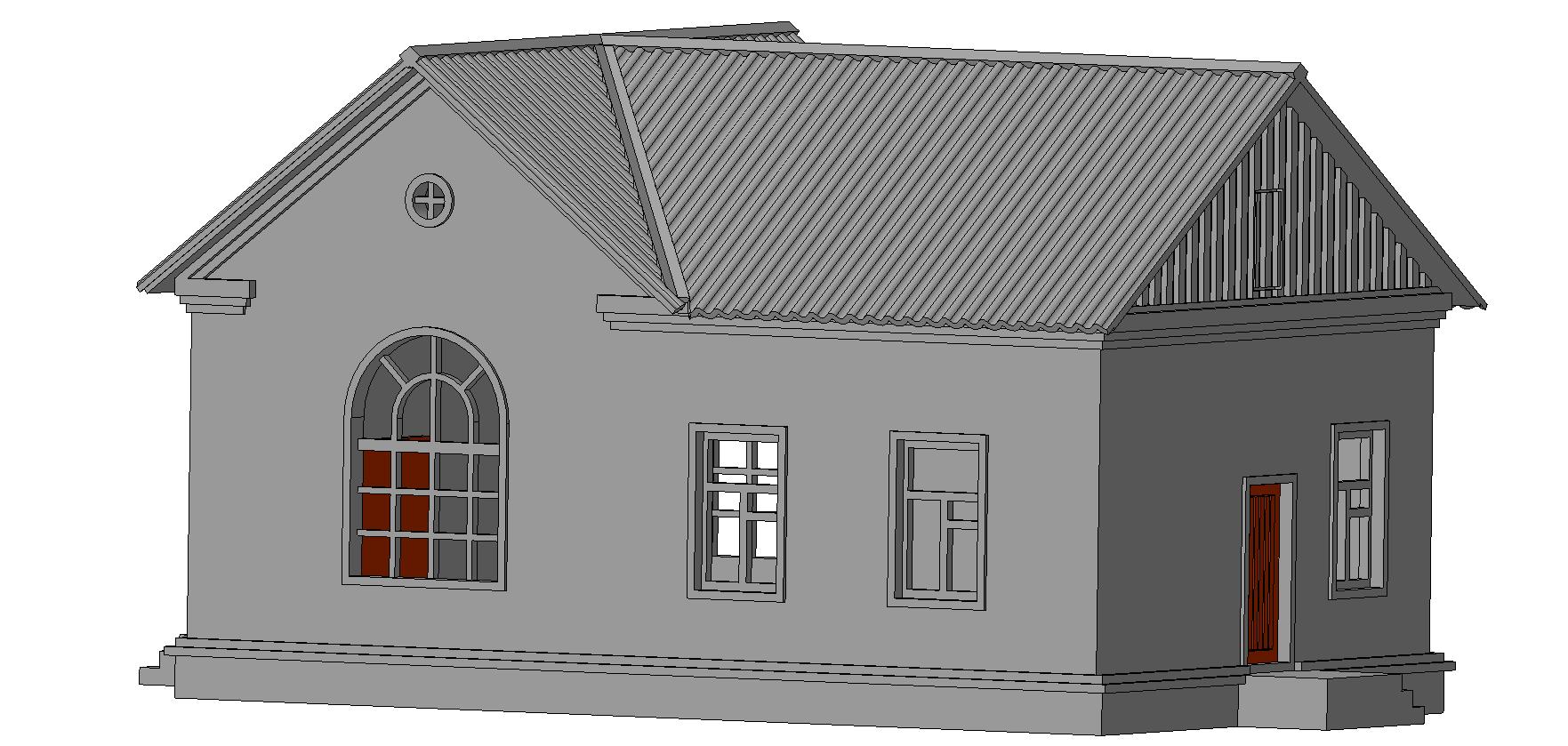 Здание возведено из кирпича. Стены окрашены или оштукатурены и окрашены. Оконные и дверные блоки типовые. Размеры:271,70ммХ108,90ммХ72,70мм