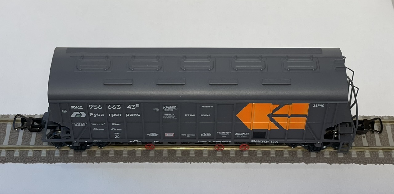 Вагоны Росагротранс покрашены немного в другой цвет и стрелки покрасил оранжевым флером с белой подложкой.