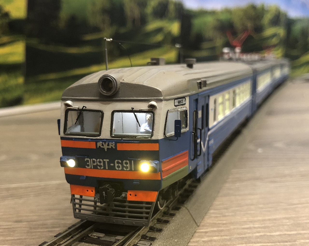 На этот раз собрал электричку ЭР9Т в окрасе белорусских железных дорог, именно на этих электричках я часто ездил от Осипович до Минска и обратно.. Номер 691 не знаю почему выбрал.., понравился