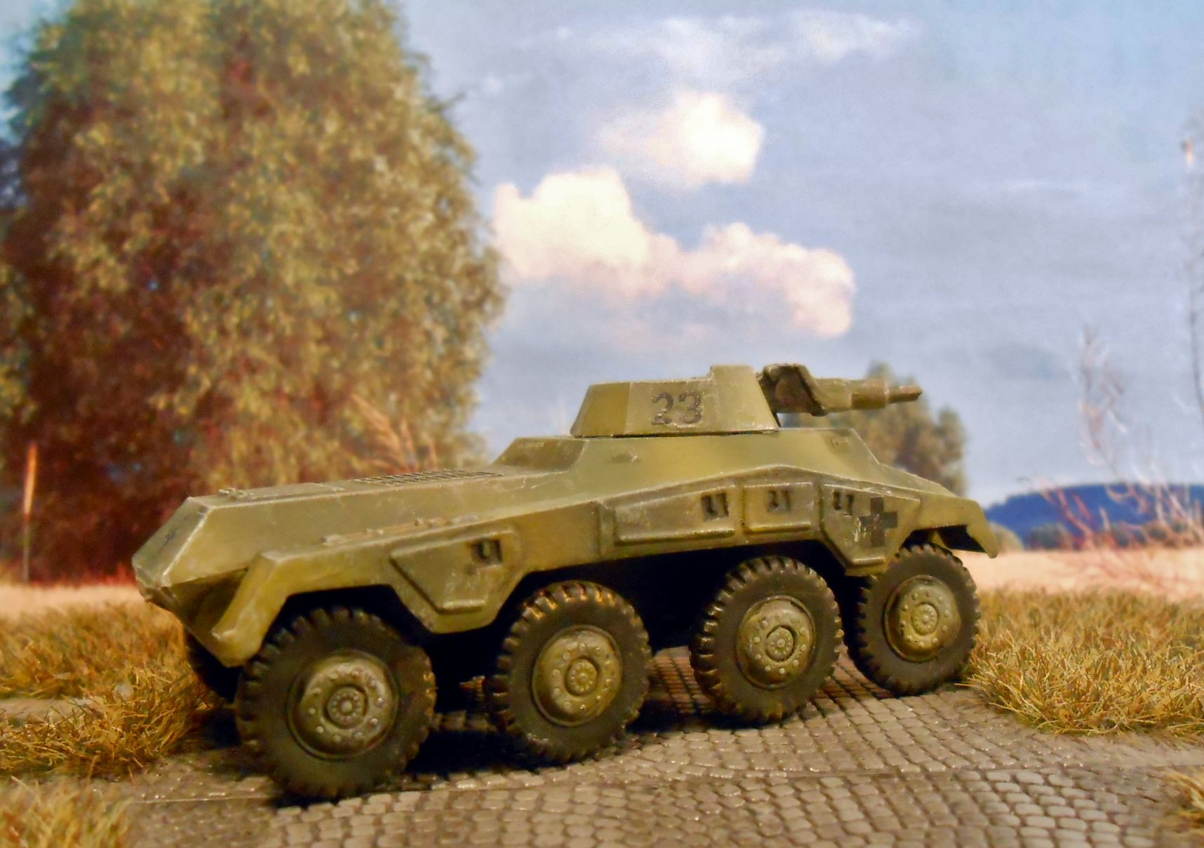 Которая хоть и не блещет красотой и детализацией,но вполне сносная для воинской диорамы или эшелона. Исходник прибыл покрашен кистью некими красками,которые не смылись даже растворителем.