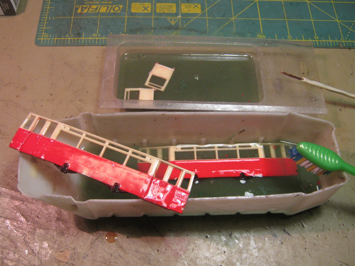 Решил уготовить этому вагону другую роль. Не забываем, что имеется нетронутый набор с моторным и прицепным. Наверное два прицепных и один моторный - это неправильно, поэтому решено из одинокого экспериментального прицепного делать моторный. Трамвай будет с дверьми на один борт и с одной кабиной управления. Стинка доверительно сообщил, что это "Типа под поздний вариант."©