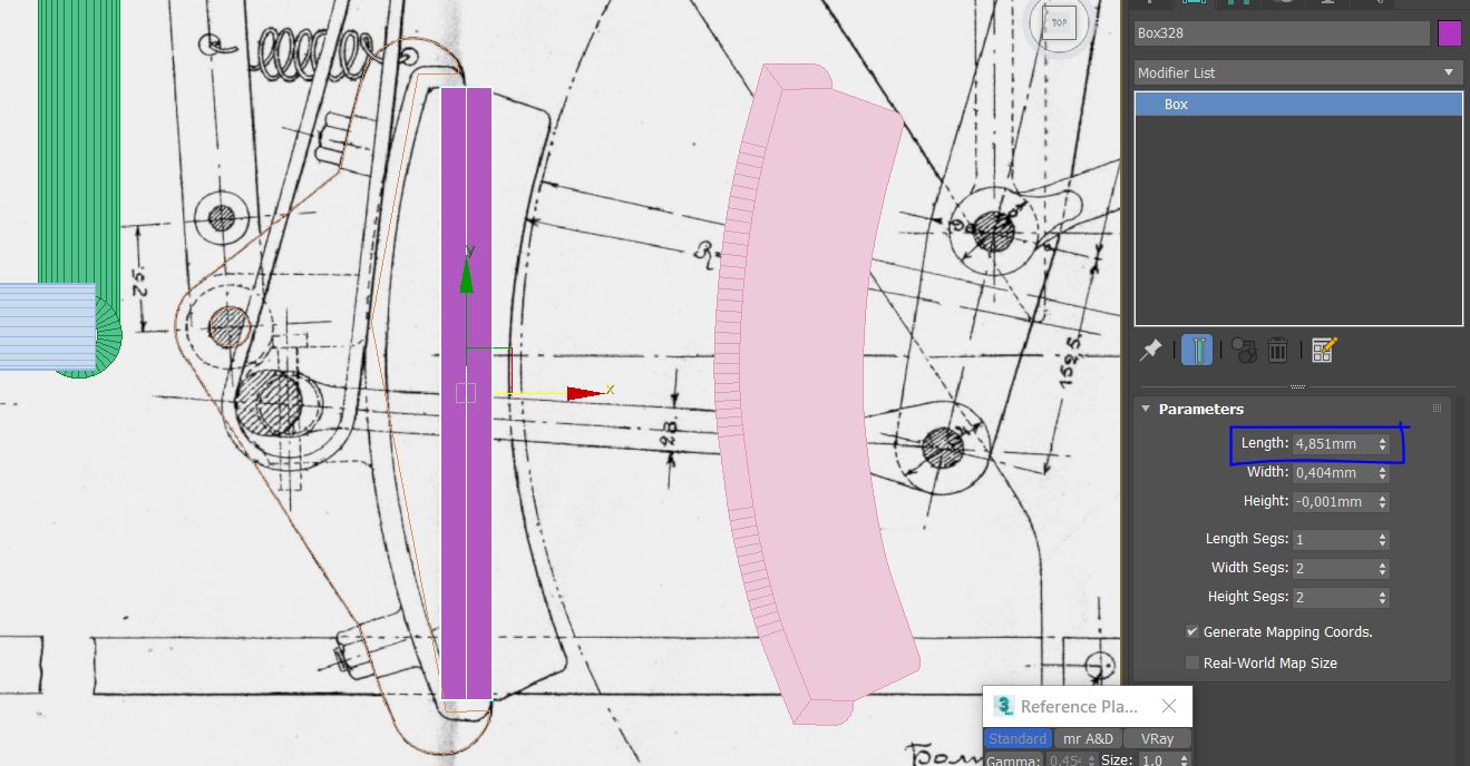 К примеру хороший четкий чертеж, выставленный по габаритам модели. Проверяю боксом нарисованным от центров линий, видим размер 4,851мм,