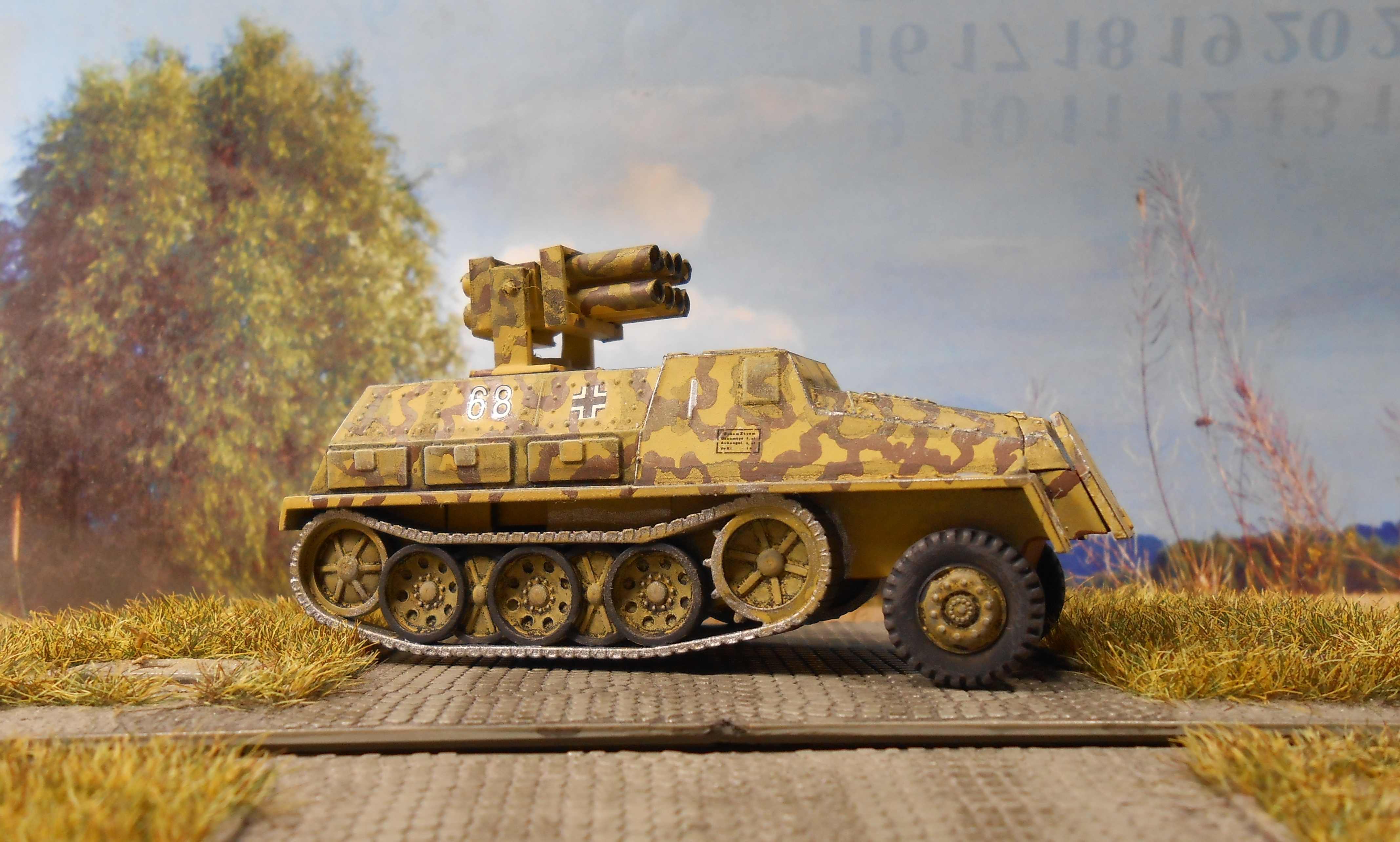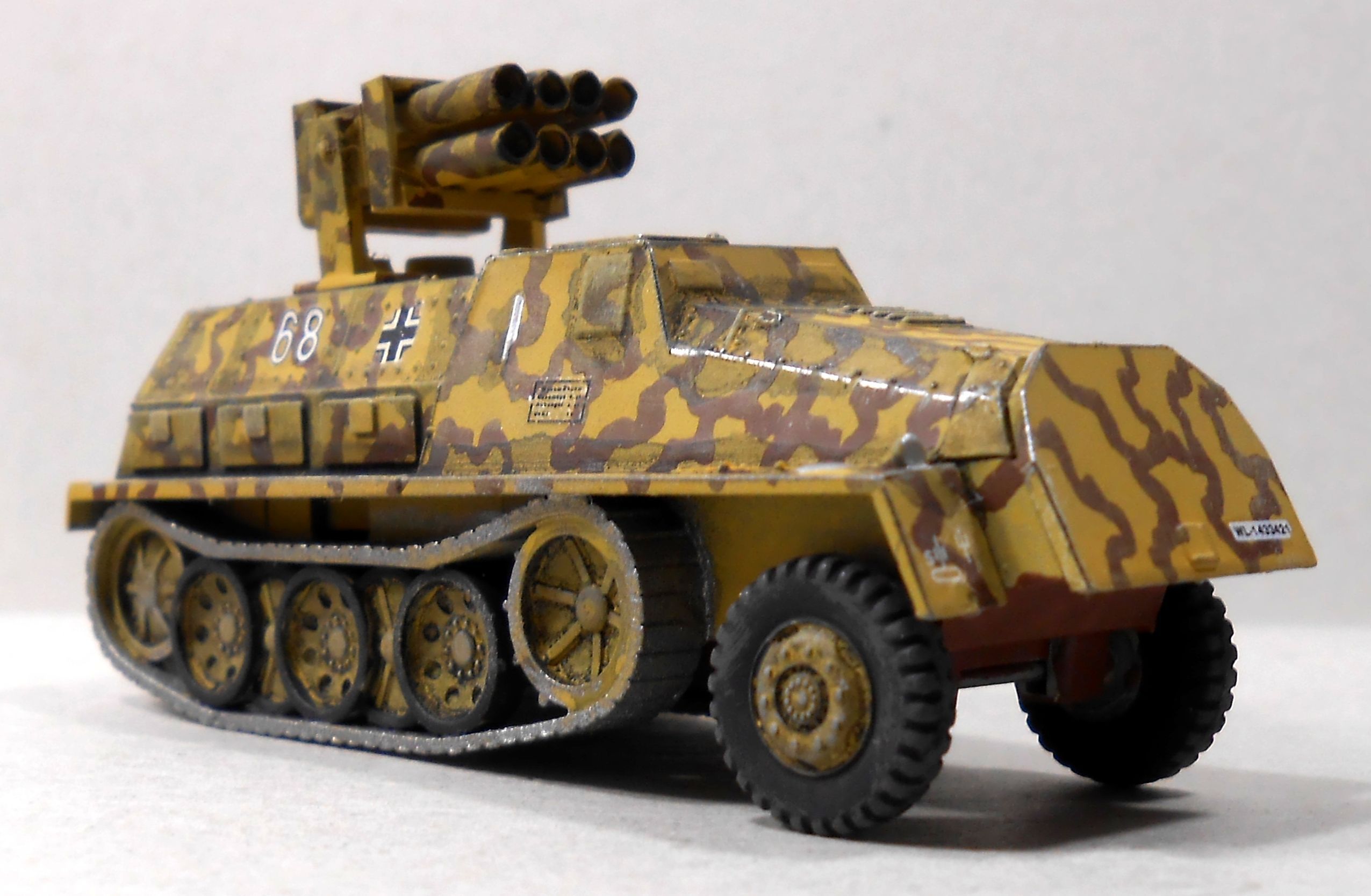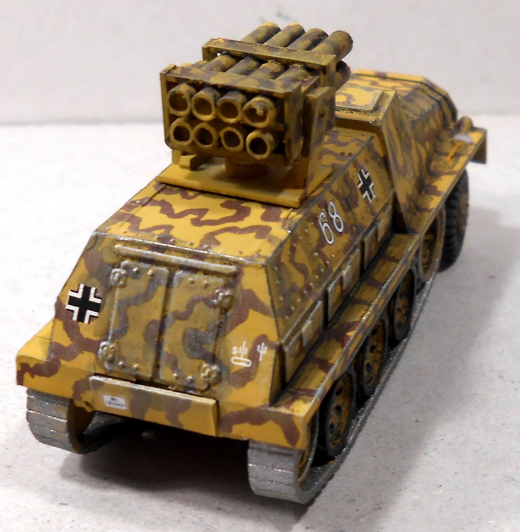 Тамия,лак ,смывка тоже.Деки произвольные.Легкий грязевой обгадинг.Результат на фото. Ракетная установка окрашена также.Вращается на лафете,ракета поднимается,ноги складываются.